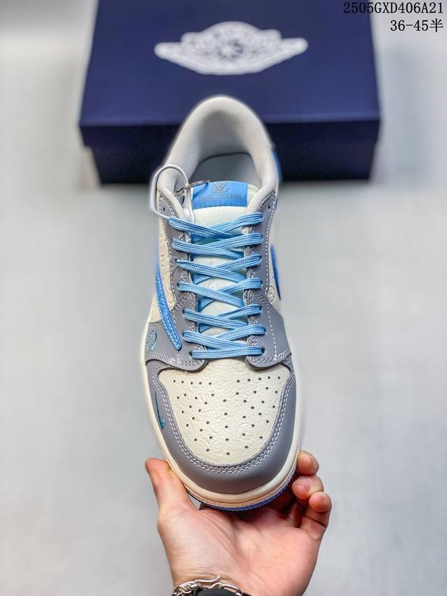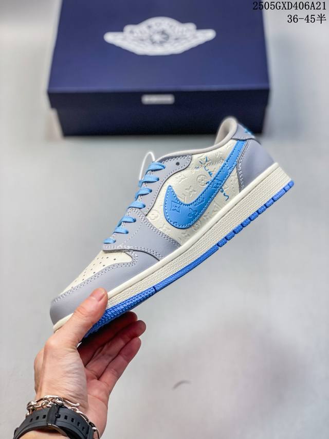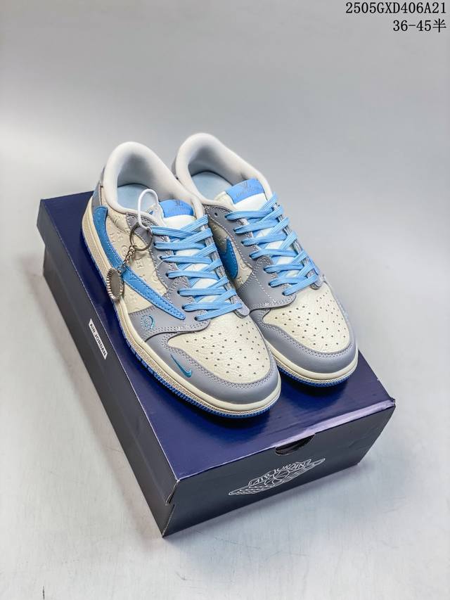 Overseas Hit Limited Sale Travis Scott X Fragment Design X Jordan Air Jordan 1 Low Og Sp Lv Joint Gray-Blue Hook Multi-Party Joint Cooperation Combines Travis Scott's Unique Music Style, Fujiwara Hiroshi's Individual Design Style And Jordan Brand Classic Elements Make It A Pair Of Shoes With Unique Identity And Value. The Fresh And Three-Dimensional Appearance Plus The Joint Logo Further Highlight Its Unique Identity. This Color Scheme Shows Vitality And Fashion Sense, Which Is Visually Eye-Catching. The Texture Of The Shoe Body And The Delicate Details Make It Look High-End And Full Of Style. This Inverted Hook Joint Is A Perfect Combination Of Design And Creativity, Integrating Multiple Personal Styles. It Is A Highly Anticipated Trendy Shoe. Low-Top Casual Board Shoes With Customized Shoe Boxes From Large Factories With Pure Original Quality. Super High Cleanliness. The Leather Is Cut Cleanly Without Any Burrs. The Details Are Perfect.