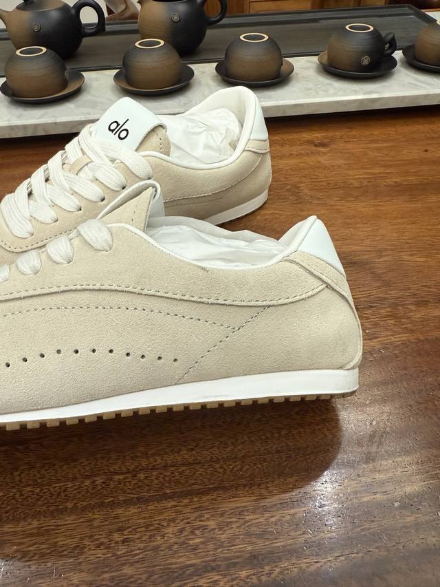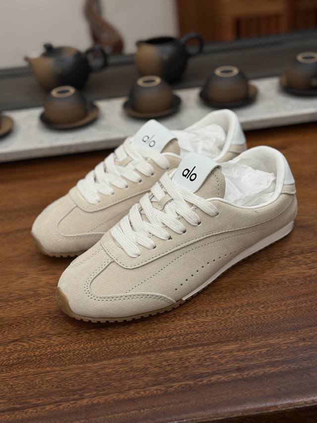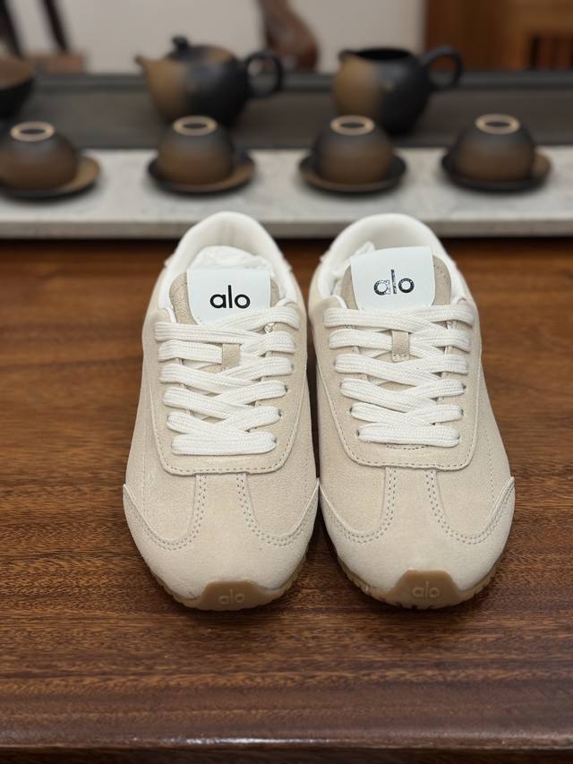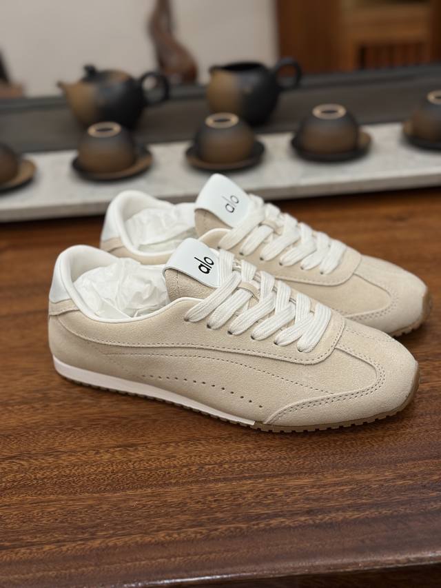 Alo Yoga Sunset Comfortable Living Shoes (Original Box and Label). Alo Yoga's designs extend into everyday wear, consistently capturing contemporary fashion trends. They seamlessly combine the brand's sporty aesthetic, refined and avant-garde design, and comfortable, functional fabrics. These shoes are a favorite among fashion icons and celebrities. Sizes: 35, 36, 37, 38, 39, 40, 41.