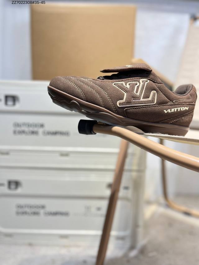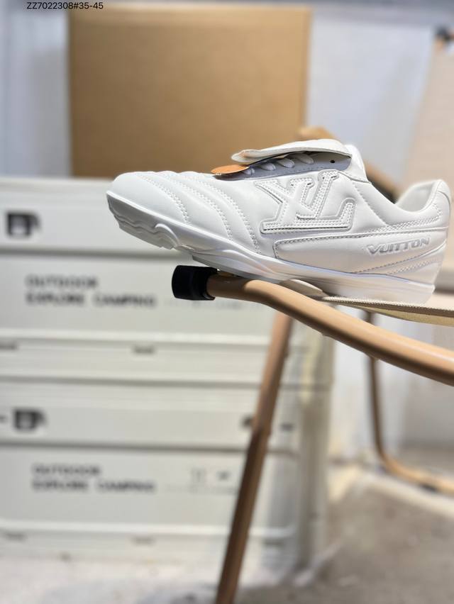 Louis Vuitton Footprint Soccer LV Leather Men's Spring/Summer 2025 Round-Toe Lace-Up Low-Top Lifestyle Shoes, unveiled during the Spring/Summer 2025 fashion show, are Pharrell Williams' first soccer-inspired sneaker. Inspired by the sport of football, which transcends generations and cultures, the shoes echo the Spring/Summer 2025 fashion show's theme of unity and universal participation. Noted for their sleek design, the shoes feature a dynamic IV Initials logo on the side, a football-inspired Lvers United crest on the tongue, and a rubber sole embellished with multiple Louis Vuitton logos. A trendsetter in the fashion world, stylish and casual wear. Zz7022308#