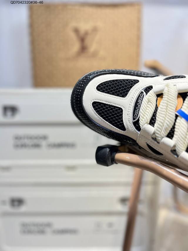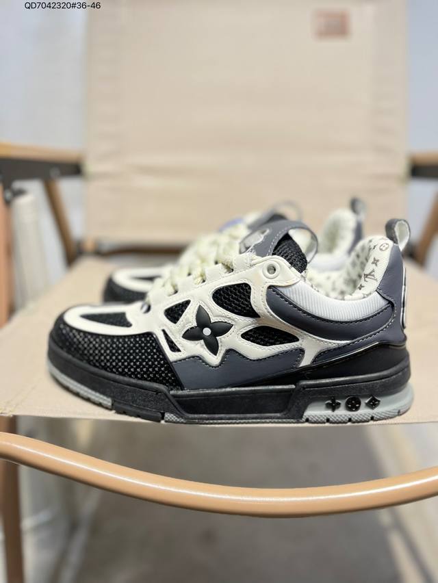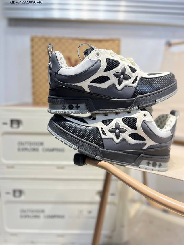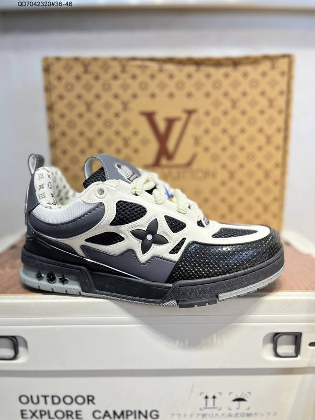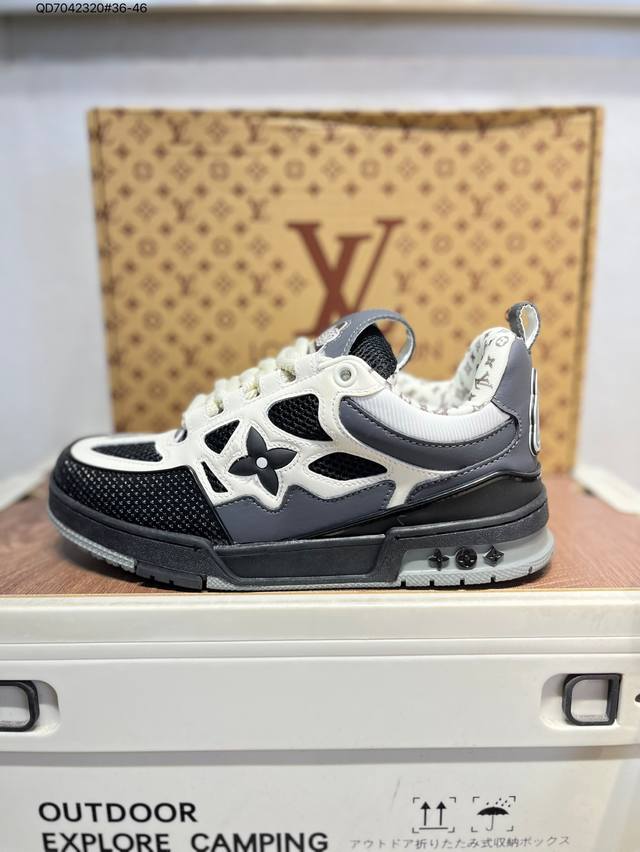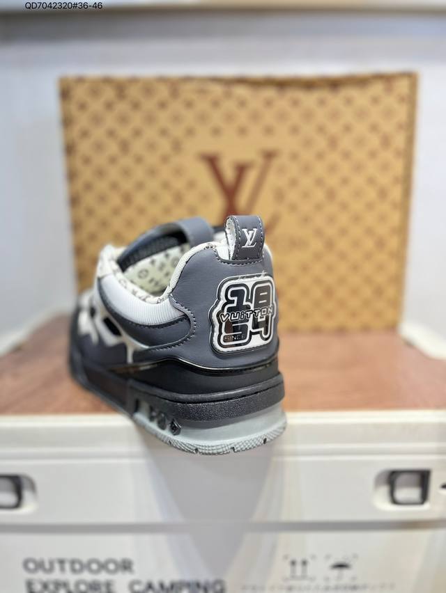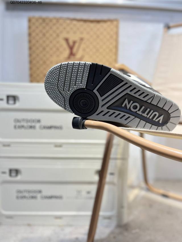new LV Trainer sneakers in the latest colorway. L's basketball-style sneakers. Designed by artistic director Virgil Abloh, these shoes feature a footbed made of polyamide and breathable British mesh. Qd7042320#36-46
