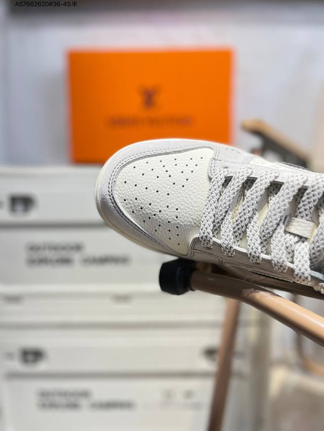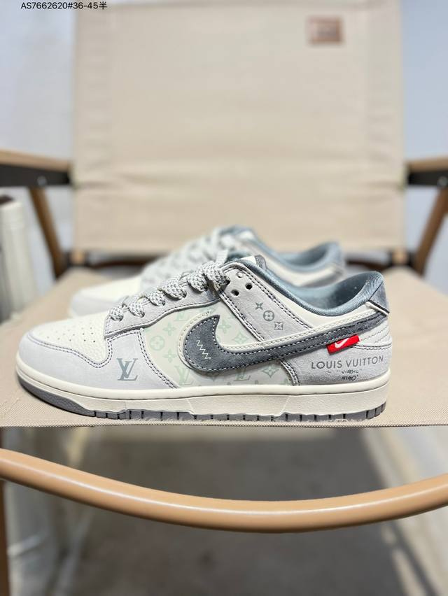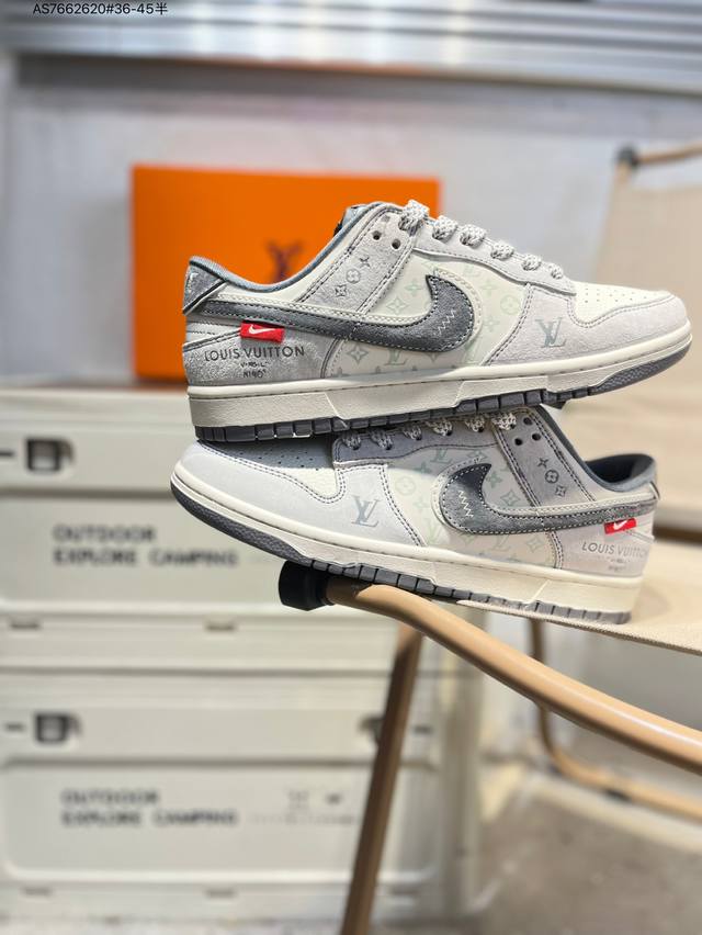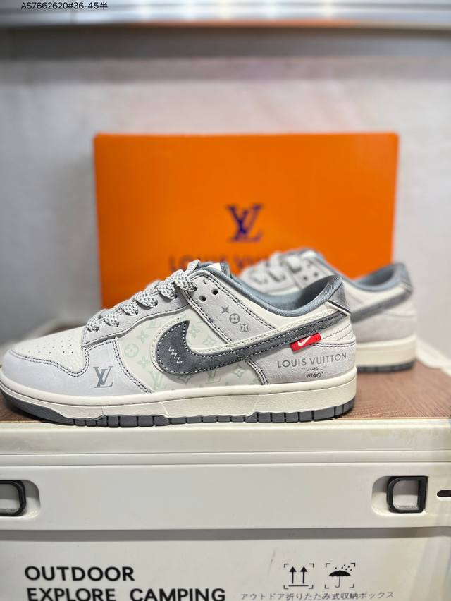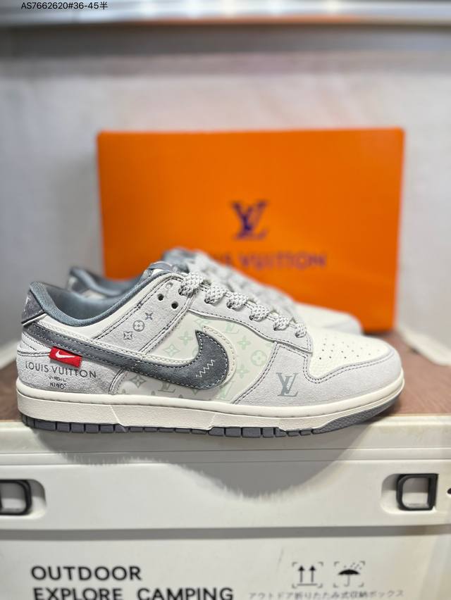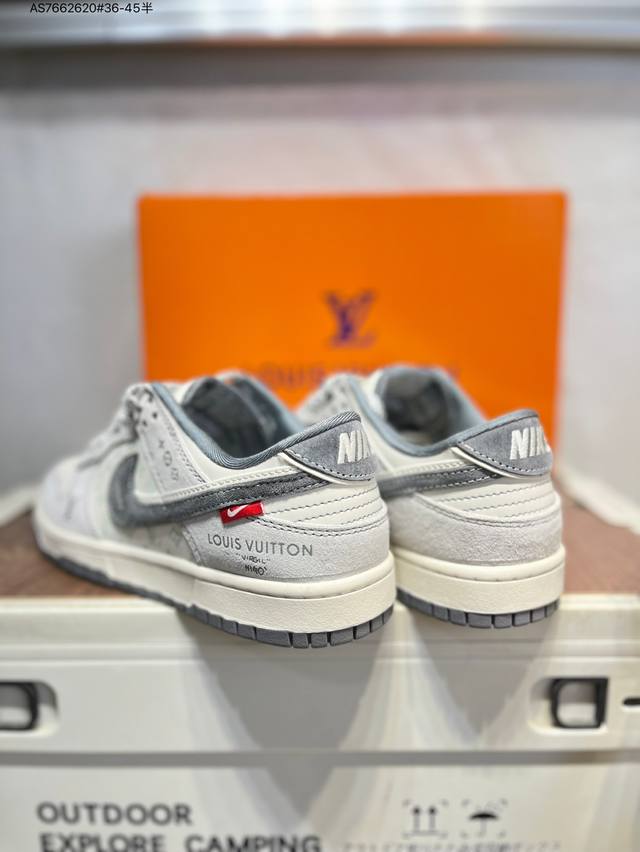 Lv X Nike Sb Dunk Low, a highly recommended new colorway from a leading manufacturer. Made from genuine top-grain material and featuring an exclusive, distilled finish. This shoe offers a superior visual and foot-feeling experience. Highly authentic quality and cleanliness. The leather is meticulously cut, free of burrs, and features impeccable embroidery. Cx5050 As7662620 #36-45 semi-