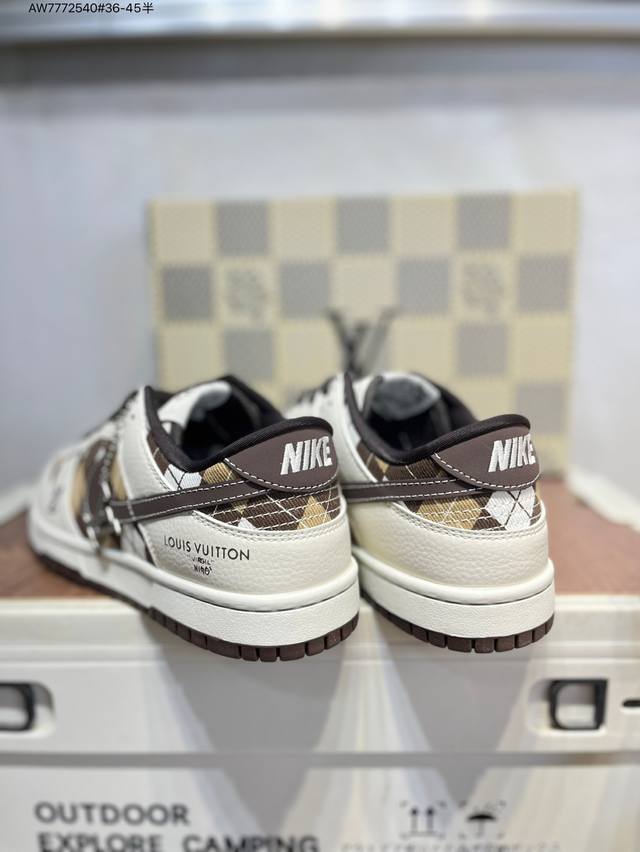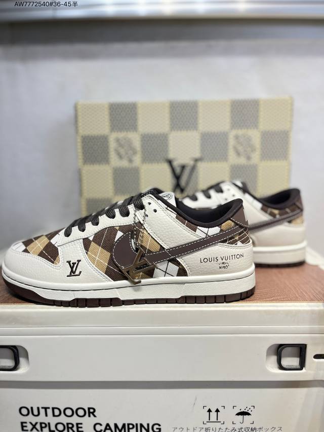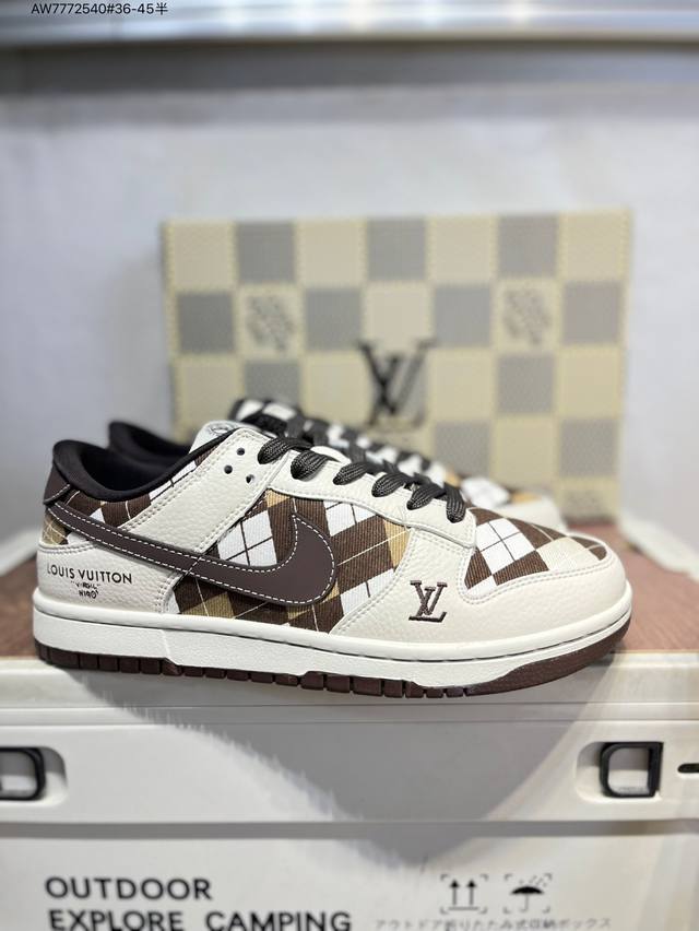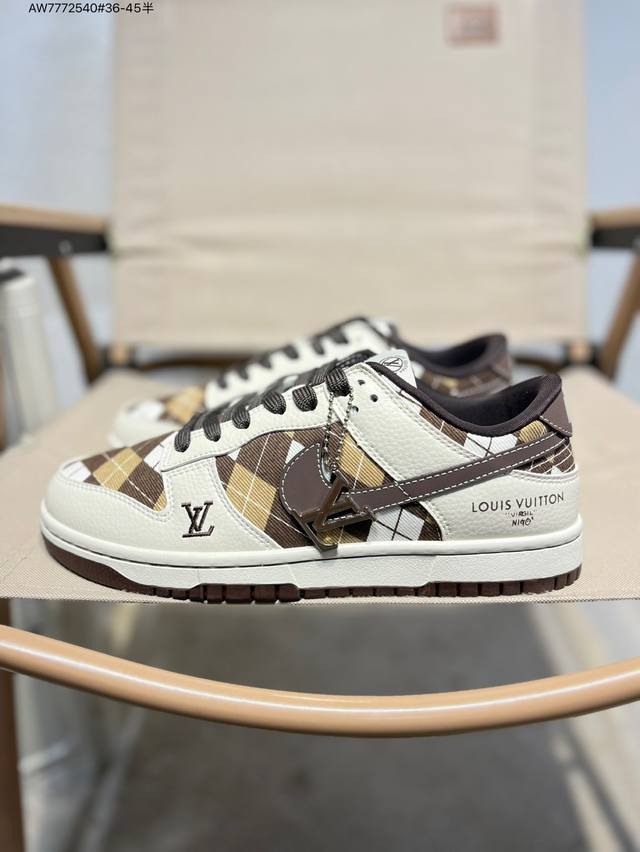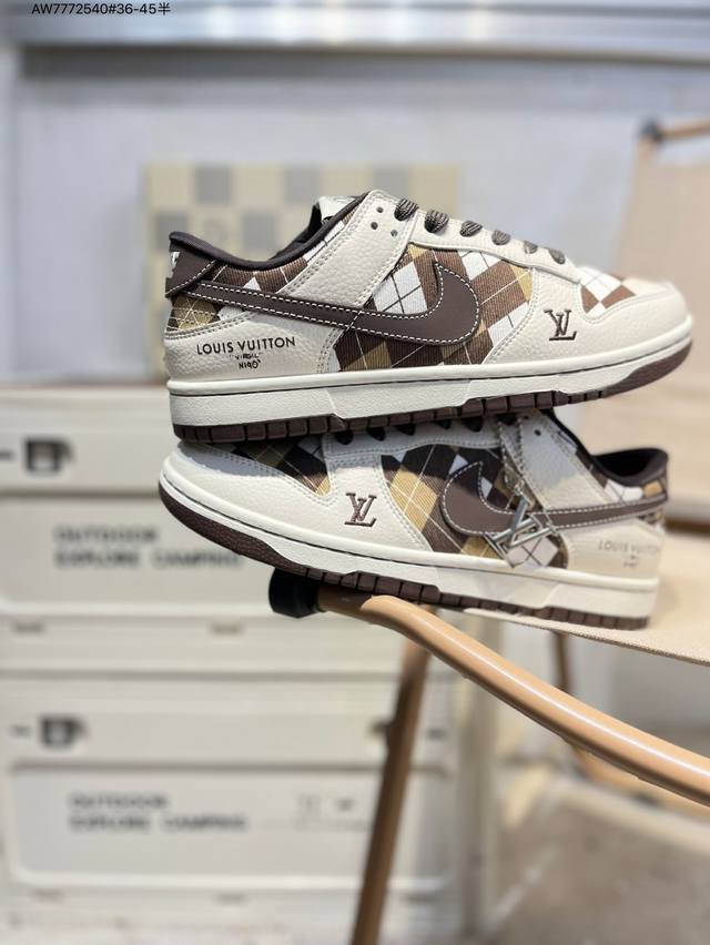 Lv X Nike Sb Dunk Low, a highly recommended new colorway from a leading manufacturer. Made from genuine top-grain material and featuring an exclusive, distilled finish. This shoe offers a superior visual and foot-feeling experience. Highly authentic quality and cleanliness. The leather is meticulously cut, free of burrs, and features impeccable electro-embroidery. Sc0601 Aw7772540 #36-45 (half)
