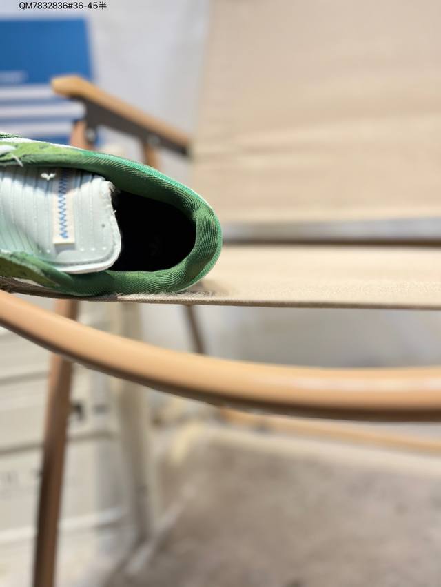 Gazelle Indoor, as the rapper actually teased the next Colab on the cover of Interview Magazine back in February. The colorway chosen is subtle, featuring a White leather base with Black accents while Grey suede is featured on the toe box and heel. The highlight of this model is the warped toe box, which gives off an asymmetrical feel.