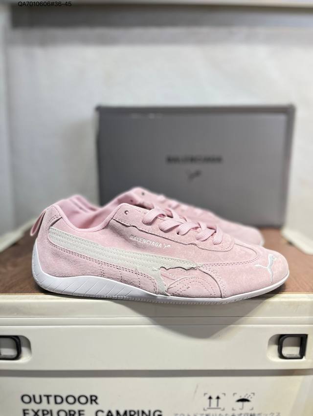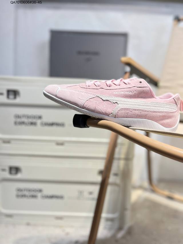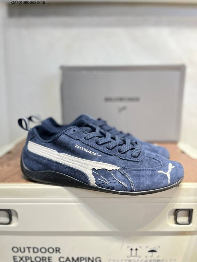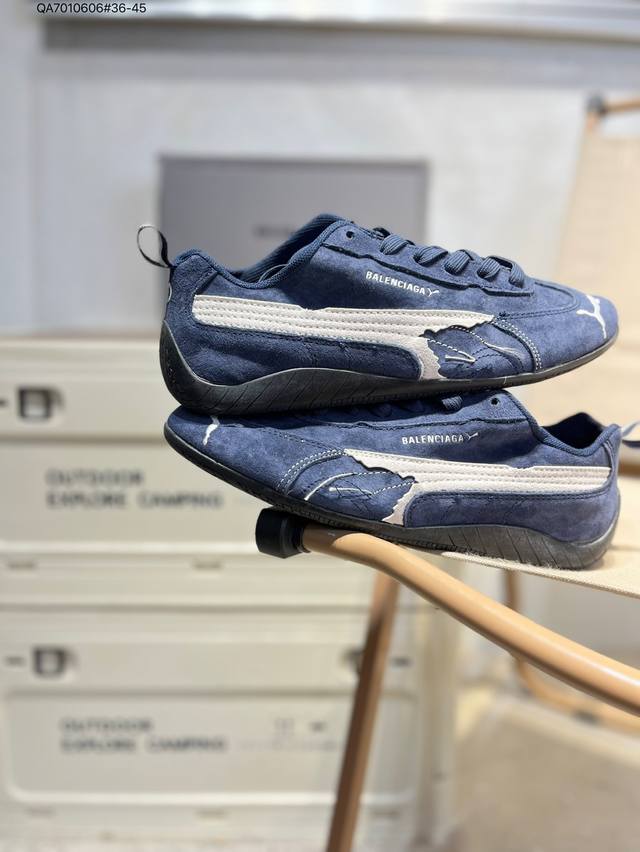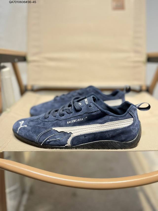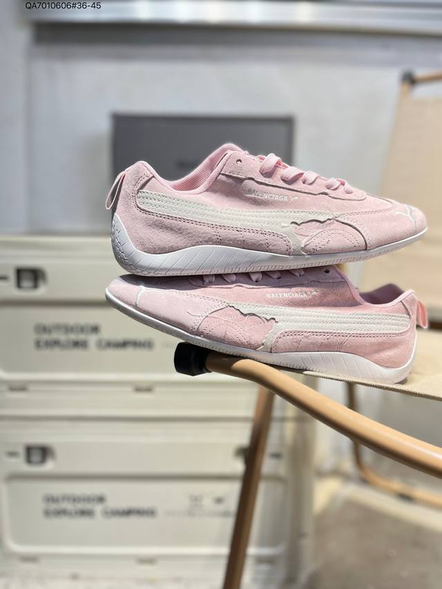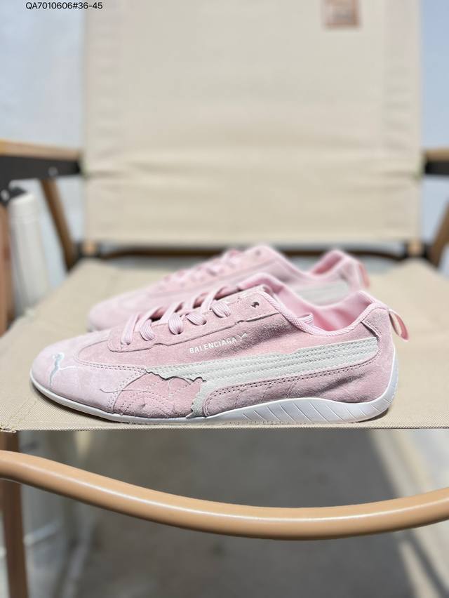 PUMA X Balenciaga Speedcat series thin-soled shoes. Round-toe, distressed, low-top casual shoes with cowhide suede.