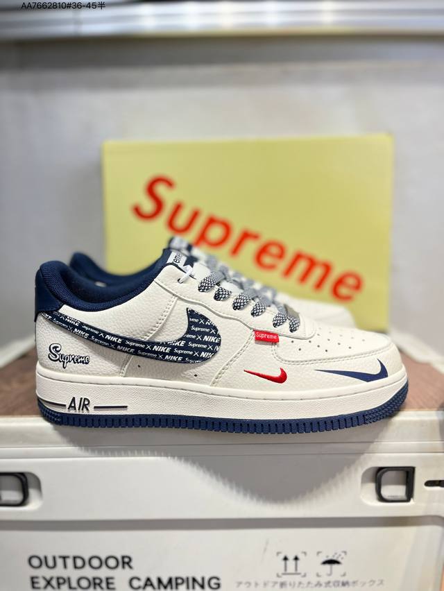 Supreme X NK Air Force 1'07 Low Air Force One Low-top Casual Sneakers#Custom leather, original last, original cardboard, pure Air Force version, high cleanliness, built-in full-palm air cushion Xd2588 Aa7662810#36-45 half