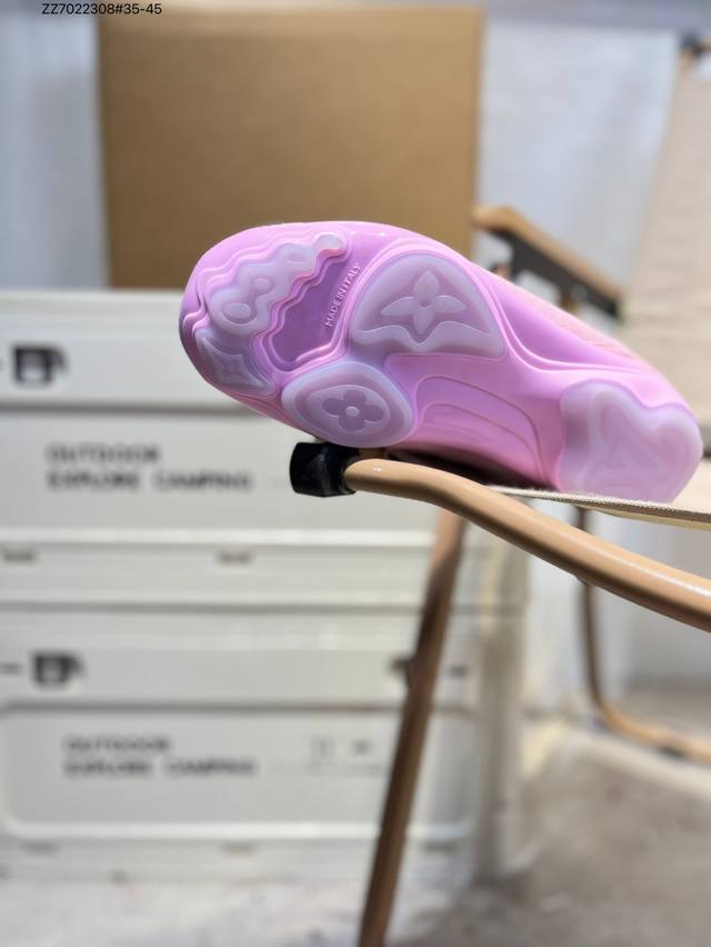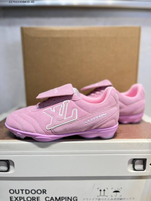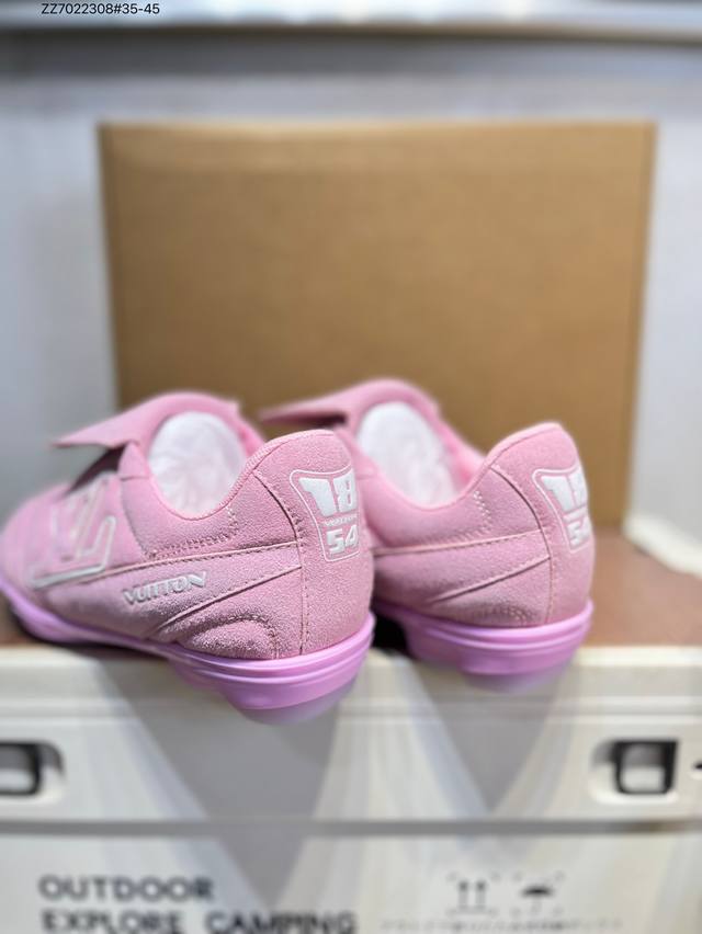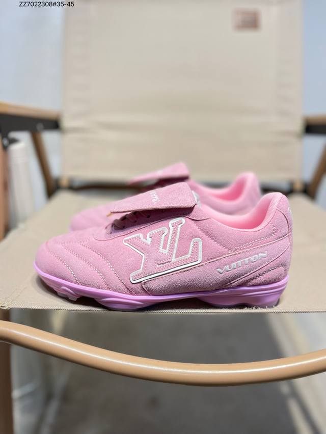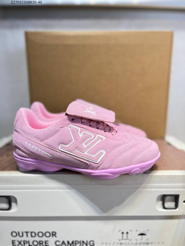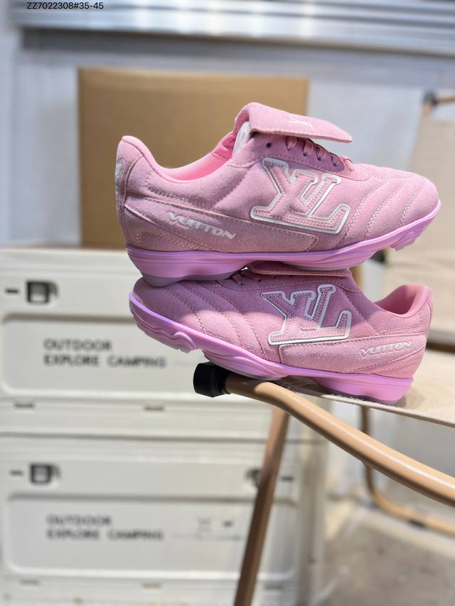 The Louis Vuitton Footprint Soccer LV Leather Men's Spring/Summer 2025 Round-Toe Lace-Up Low-Top Lifestyle Shoe, unveiled during the Spring/Summer 2025 fashion show, is Pharrell Williams' first soccer-inspired sneaker. Inspired by the sport of football, which transcends generations and cultures, the shoe embodies the Spring/Summer 2025 fashion show's theme of unity and universal participation. Noted for its sleek design, the shoe features a dynamic IV Initials logo on the side, a football-inspired Lvs United crest on the tongue, and a rubber sole embellished with multiple Louis Vuitton logos. A trendsetter in the fashion world, Zz7022308#35-45