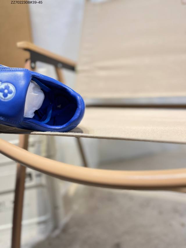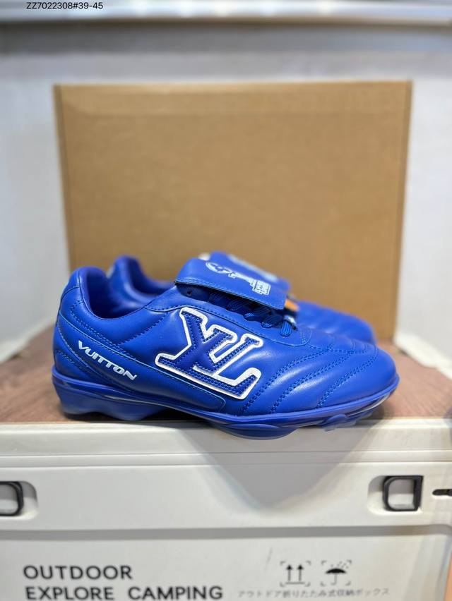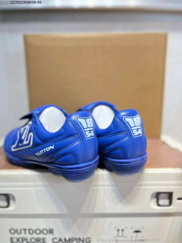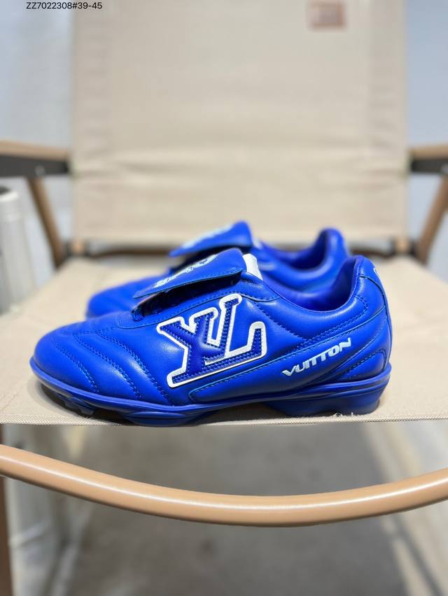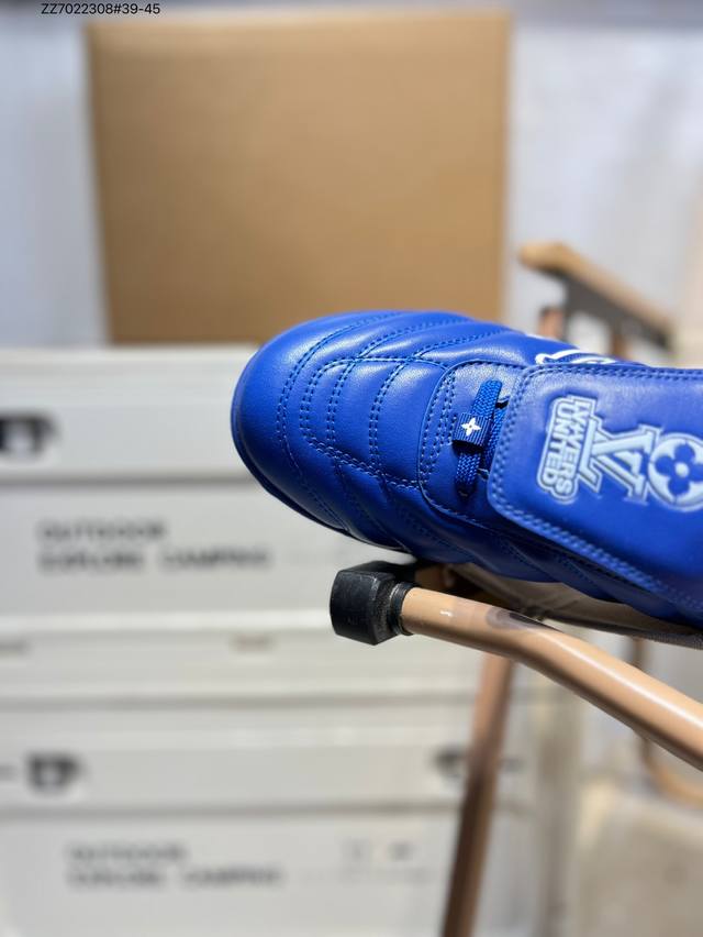 The Louis Vuitton Footprint Soccer LV Leather Men's Spring/Summer 2025 Round-Toe Lace-Up Low-Top Lifestyle Shoe, unveiled during the Spring/Summer 2025 fashion show, is Pharrell Williams' first soccer-inspired sneaker . Inspired by the sport of football, which transcends generations and cultures, the shoe embodies the Spring/Summer 2025 fashion show's theme of unity and universal participation. Noted for its sleek design, the shoe features a dynamic IV Initials logo on the side, a football-inspired Lvers United crest on the tongue, and a rubber sole embellished with multiple Louis Vuitton logos. A trendsetter in the fashion world, Zz7022308#39-45