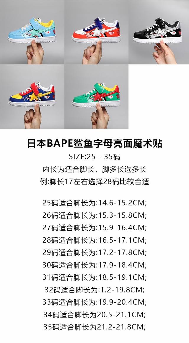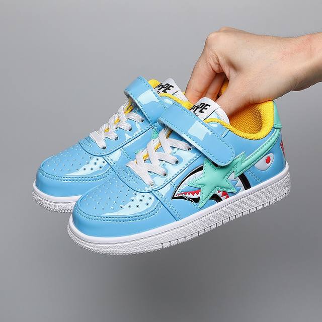 Bape Shark Letter Glossy Velcro Kids Sneakers
