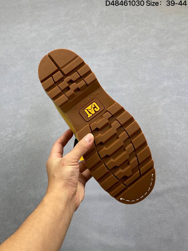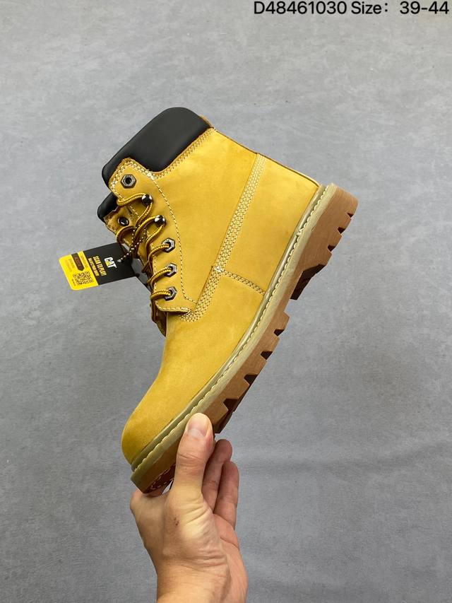 Cat Outdoor Work Boots P110499 Made in Dongguan, high-quality original design. All shoes are made of genuine cowhide leather. From the outsole to the hardware, all are from the same manufacturer. The raw materials and manufacturing process are identical to the original. Goodyear welt construction ensures they will never come unglued. Highly sought-after. First order quality strictly controlled. A top-selling product on Taobao, exclusively available online. Quality beyond doubt, comparable to the original. Complete set, same packaging as the official website. Perfect for winter, outdoor use, and casual wear. Sizes: 38 39 40 41 42 43 44 45. Code: D48461030.