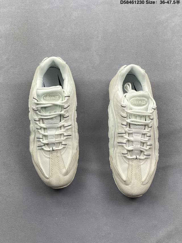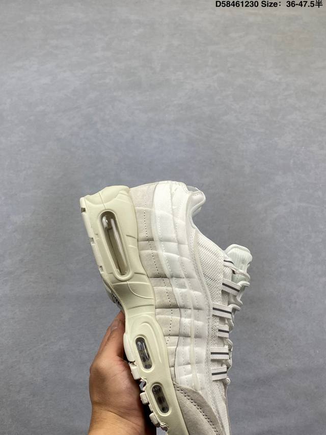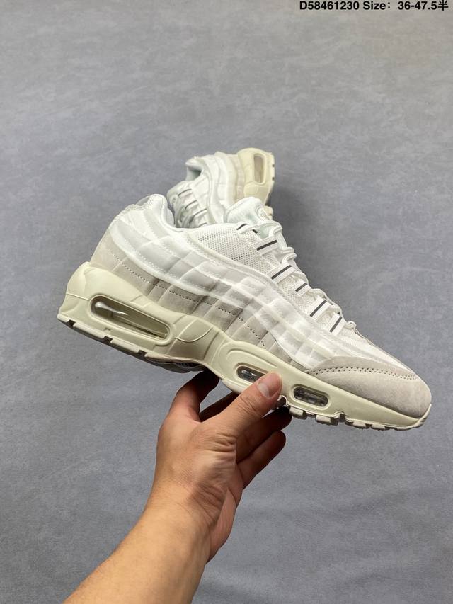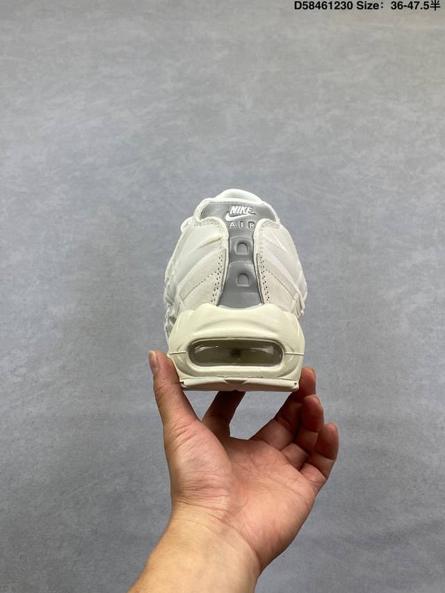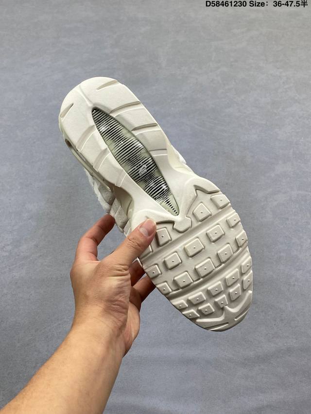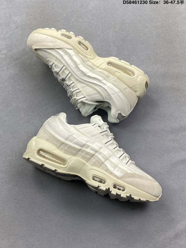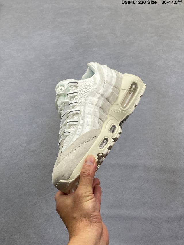 Authentic Nike Air Max 95 Tt Retro Running Shoes, Casual Sports Shoes. This shoe features a forefoot windowed Air Max unit, a design unprecedented at the time. The lace eyelets are inspired by the human ribcage, while the sole support mimics the human spine. Even the air pressure of each unit is clearly marked. This design still looks incredibly high-tech today. Product Code: Cu8406-100. Size: As shown. D58461230.
