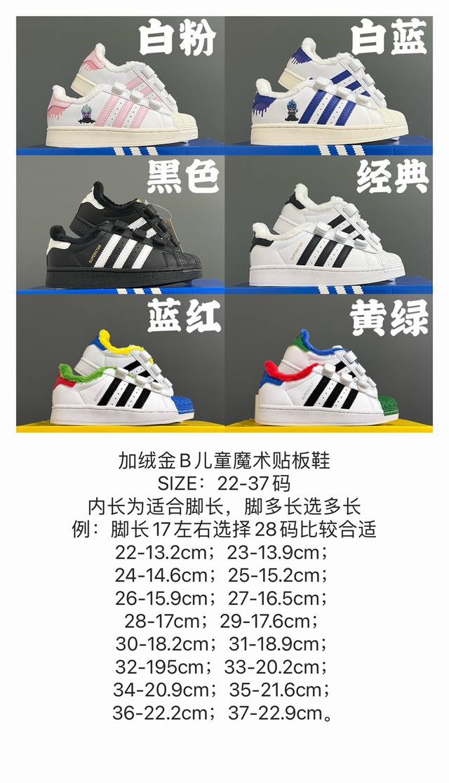 Fleece-lined Gold B Children's Velcro Sneakers Ddd Size: 22-37 Ddd Classic gold-label shell toe style Ddd Fleece-lined and thickened for extra comfort Ddd Velcro design for super easy on and off Ddd Wear-resistant and non-slip rubber outsole for a great feel Ddd