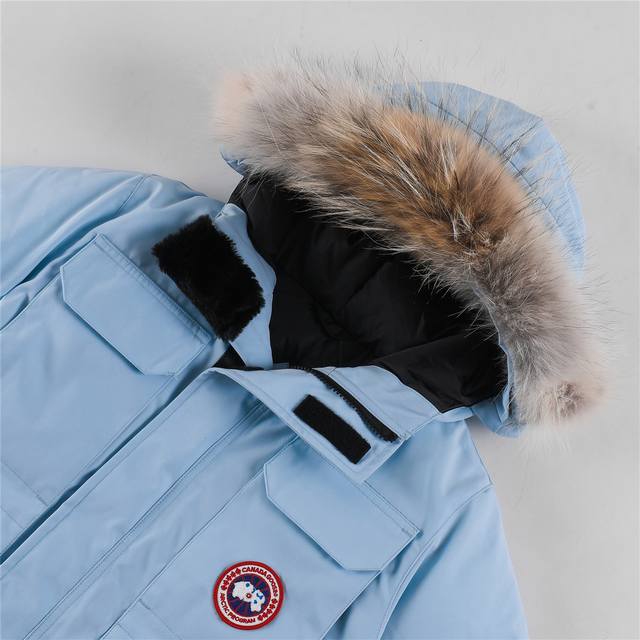 Special Offer: Canada Goose 4565Y Expedition (C08) Children's Parka/Down Jacket, Authentic Original Pattern, All Accessories Custom-Made. Windproof and waterproof fabric to keep your baby warm all winter. Authentic white duck down, fluffy and non-clumping, electrically controlled filling machine. Custom-made authentic YKK military-grade zipper with high-hardness, non-jamming zipper head. Original Canadian coyote fur collar. Workmanship and stitching are all controlled by workers with over ten years of experience, ensuring straight lines and avoiding crookedness. The inner stitching density is even more meticulous. See for yourself. Includes Canada Goose label, collar label, washing label, hang tag, zipper pull, pocket label, back label, collar flannel, Velcro, cuffs