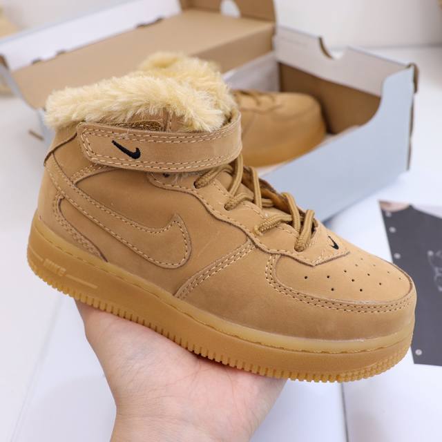 Special offer, returnable and exchangeable, sizes 26-37. Ddd NK Fleece-lined Air Force 1 High-top Kids Shoes. The Air Force series' high-value design is destined to be sought after! Ddd Full of fun and trendy style. The sporty Af1 paired with youthful colors is fresh, handsome, and full of sunshine! Perfect for active kids! Except for the toe cap, the entire shoe is fleece-lined, and the insole is also fleece-lined. Ddd