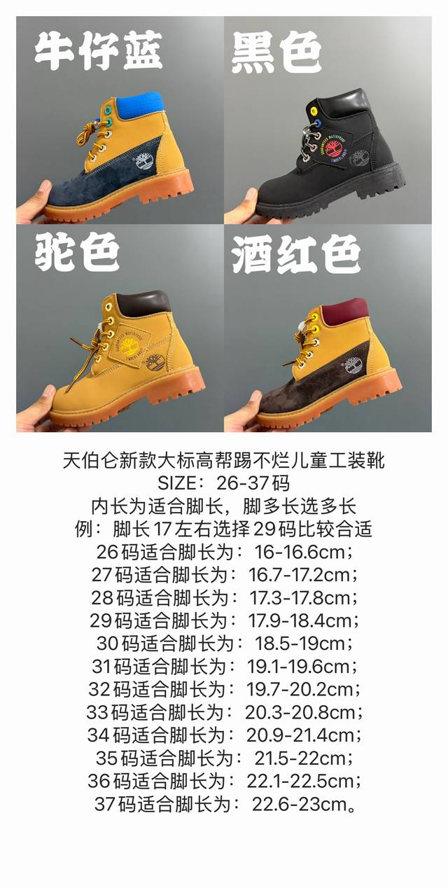 T New Beren High-Top Timberland Work Boots with Big Logo Size: 26-37 I absolutely love the Timberland series! High-quality leather, super luxurious feel. Easy-on and easy-off shoelace buckle design. Durable and non-slip rubber outsole, feels amazing on your feet.
