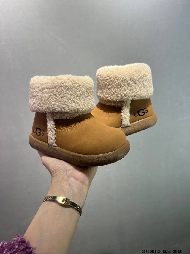 26-36 DDD Children's Ugg Retro Mid-High Top Sneakers Trendy Boots, Made of Shearling and Leather, Original Style with Retro Color Blocking; Classic Return, Interpreting the Life of Generation Z Youth; A Walking Fashion Icon. Material: Soft Leather, Shearling, Rubber Outsole. DDD