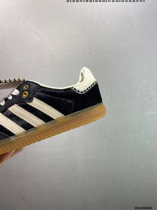 A classic, retro low-top, casual sports running shoe from the Wales Bonner x Adidas new fall/winter collaboration. This classic sneaker features an oversized tongue crafted from plush fabric with unique stitching inspired by Jamaican craftsmanship. The upper features suede and fabric paneling. A satin lining adds a touch of style. The shoe features a lace-up design, a plush fabric upper, a suede toe cap and heel tabs with contrast stitching, and a satin-lined, raw rubber outsole.