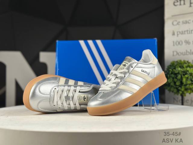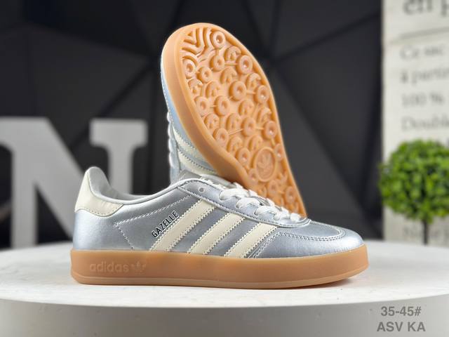 adidas Ad Gazelle Indoor Trainers Low-Top Retro, Versatile, Casual, German Training-Style Sneakers. Item No.: Jr 6 ASV. A remake of a '90s classic! Since its debut as a football training shoe in the '60s, the Gazelle has taken the world by storm with its timeless design. This remake of the 1991 version reimagines the classic Gazelle. Crafted from leather and accented with contrasting color details, this classic is even more minimalist. Sizes: 35.5-45