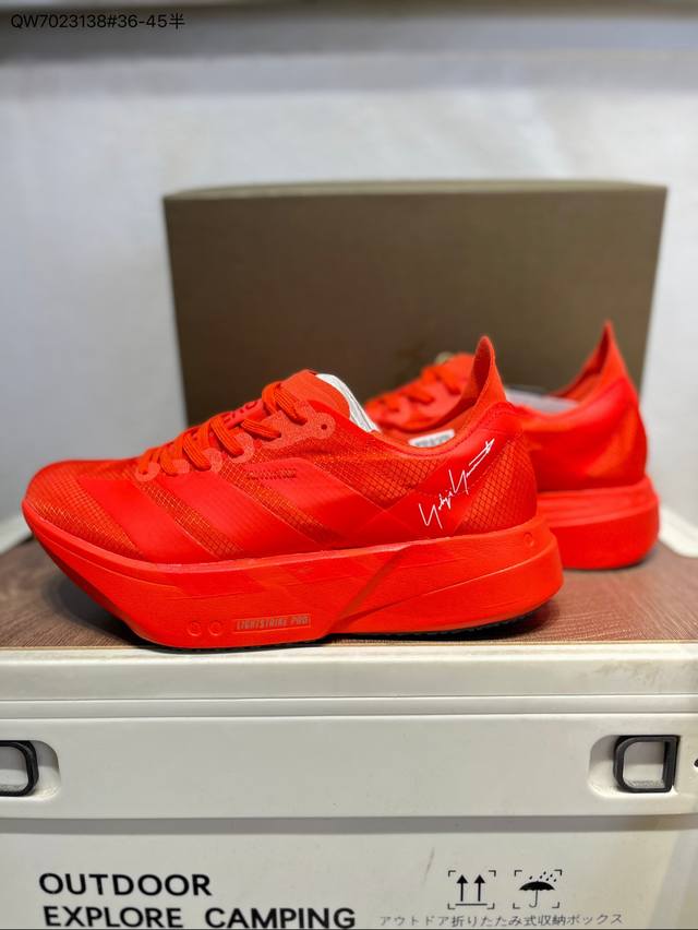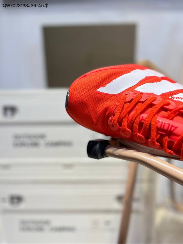 Adidas Adizero Adios 4 M Marathon Racing Professional Running Shoes. The Celermesh knitted mesh upper is very lightweight, with large gaps between the fibers to ensure breathability and sweat-wicking during running. The tongue is directly connected to the lining on both sides and the sole, preventing it from shifting laterally during running. The standard eyelets have been widened to accommodate different foot shapes. The breakthrough Energyrods technology helps runners achieve better results. The unique Lightstrike Pro foam in the midsole provides a slightly elastic feel and excellent support during running. For top elites and advanced runners, the Adios Pro is a reliable racing shoe. Jr6695 DDD Qw7023138#36-45 half DDD