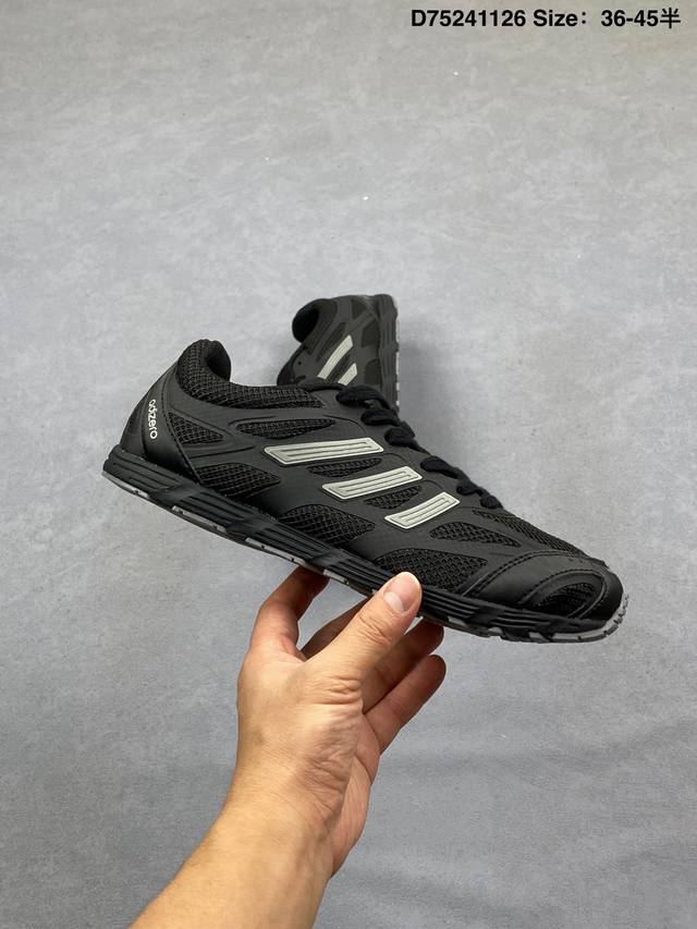 Adidas Adizero Adios 5 M Marathon Racing Professional Running Shoes DDD The Celermesh knitted mesh upper is very lightweight, with large gaps between the fibers to ensure breathability and sweat-wicking during running. The tongue is directly connected to the lining on both sides and the sole, preventing it from shifting laterally during running. The standard lacing eyelets have been widened to accommodate different foot shapes. Breakthrough Energyrods technology helps runners achieve better results. The unique Lightstrike Pro foam midsole provides a slightly elastic feel and excellent support during running. For top elites and advanced runners, the Adios Pro is a reliable racing shoe. DDD Product Code: K18290 DDD Sizes: 36-45 (half sizes) DDD Code: D75241126 DDD