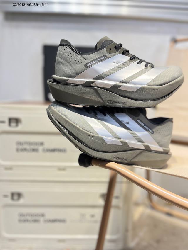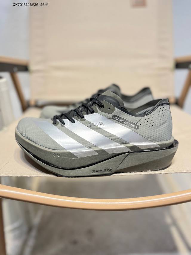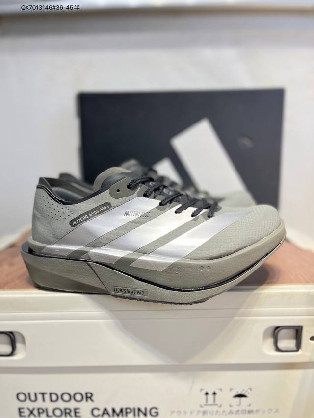 Adidas Adizero Adios 5 M Marathon Racing Professional Running Shoes DDD The Celermesh knitted mesh upper is very lightweight , with large gaps between the fibers to ensure breathability and sweat-wicking during running. The tongue is directly connected to the lining on both sides and the sole, preventing it from shifting laterally during running. An extra set of lace holes has been added to the standard laces to accommodate different foot shapes. Breakthrough Energyrods technology helps runners achieve better results. The unique Lightstrike Pro foam in the midsole provides a slightly elastic feel and excellent support during running. For top elites and advanced runners, the Adios Pro is a reliable racing shoe. DDD Product Code: K18303 Qx7013146# 36-45 Half DDD
