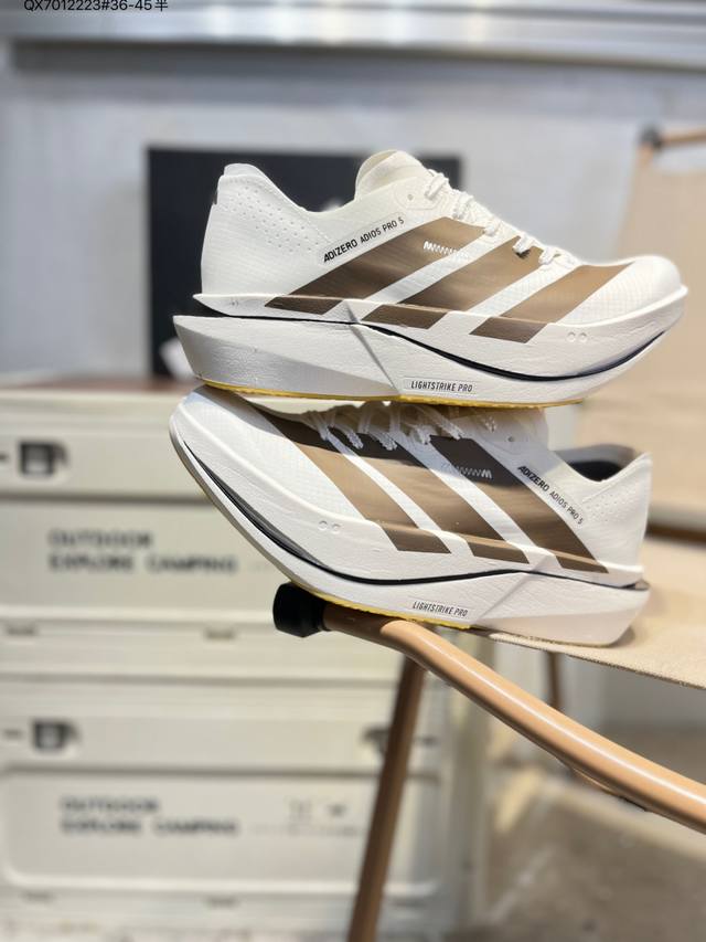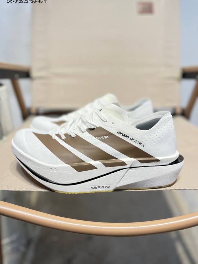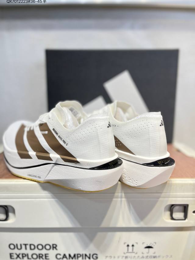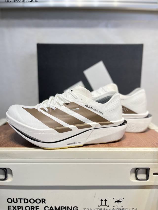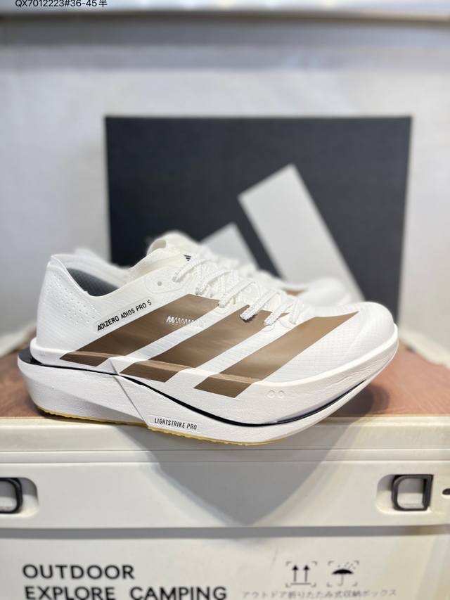 Adidas Adizero Adios 5 M Marathon Racing Professional Running Shoes Ddd The Celermesh knitted mesh upper is very lightweight with large gaps between the fibers, ensuring breathability and sweat-wicking during running. The tongue is directly connected to the lining on both sides and the sole, preventing it from shifting laterally during running. An extra set of lace holes has been added to the standard lace holes to accommodate different foot shapes. Breakthrough Energyrods technology helps runners achieve better results. The unique Lightstrike Pro foam in the midsole provides a slightly elastic feel and excellent support during running. For top elites and advanced runners, the Adios Pro is a reliable racing shoe. K18770 Qx7012223#36-45 half DDD