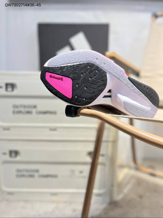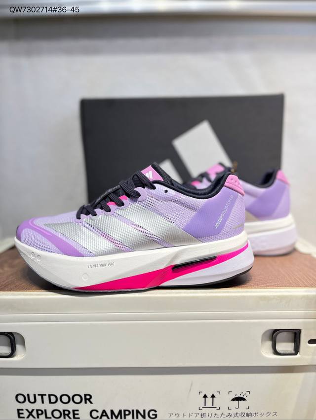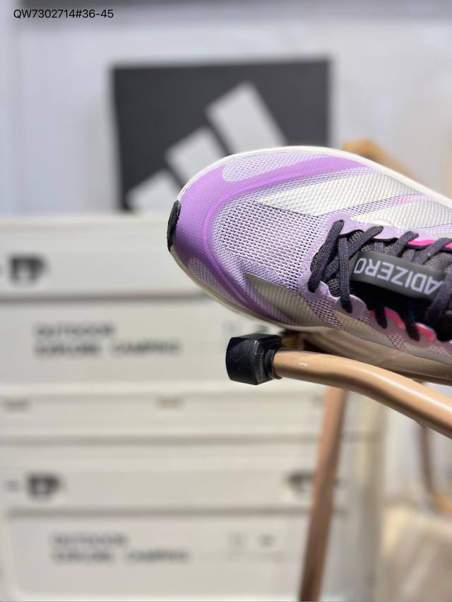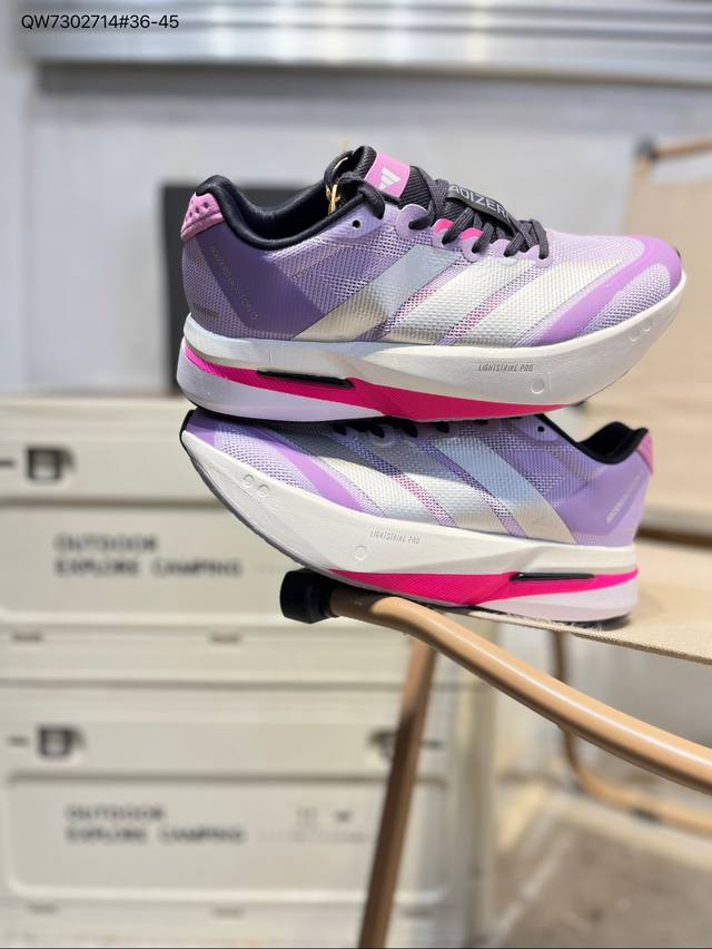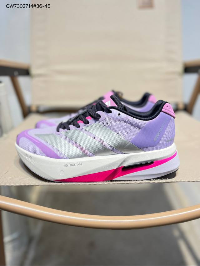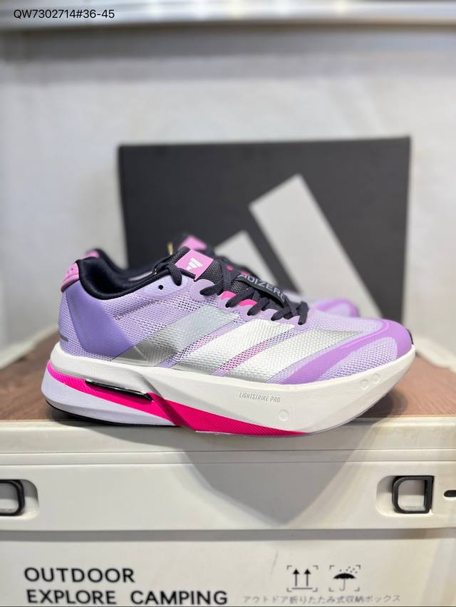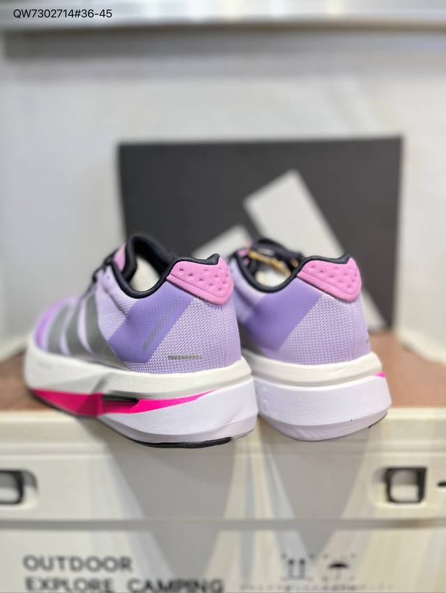 The Celermesh knitted mesh upper is very lightweight with large gaps between the fibers, ensuring breathability and sweat-wicking during running. The tongue is directly connected to the lining on both sides and the sole, preventing it from shifting laterally during running. An extra set of eyelets has been added to the standard eyelets to accommodate different foot shapes. Breakthrough Energyrods technology helps runners achieve better results. The unique Lightstrike Pro foam in the midsole provides a slightly elastic feel and excellent support during running. For top elites and advanced runners, the Adios Pro is a reliable racing shoe. Js4955