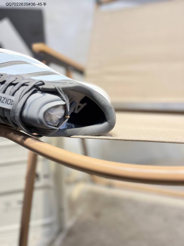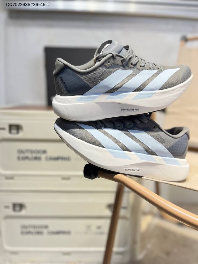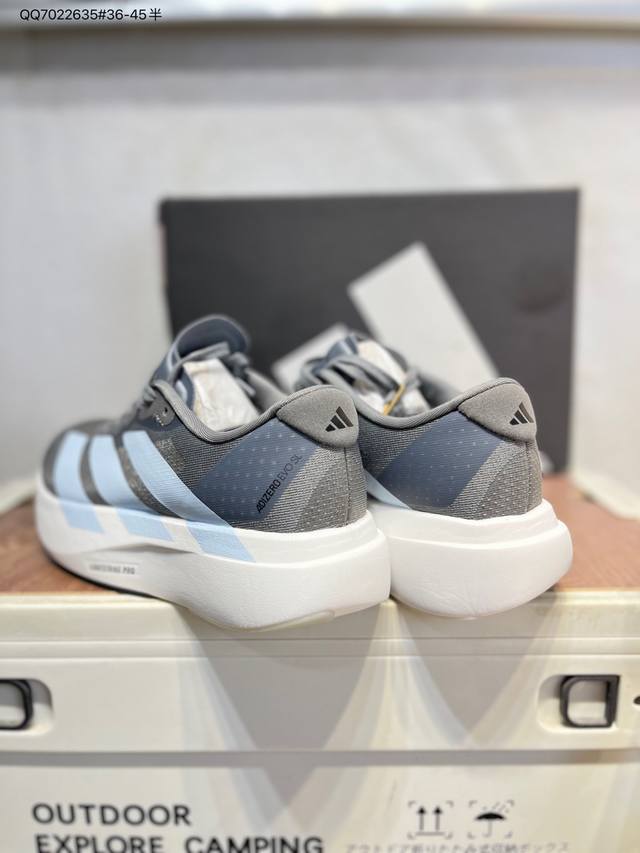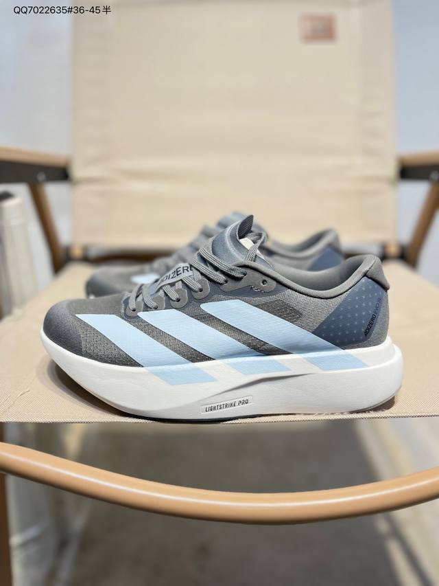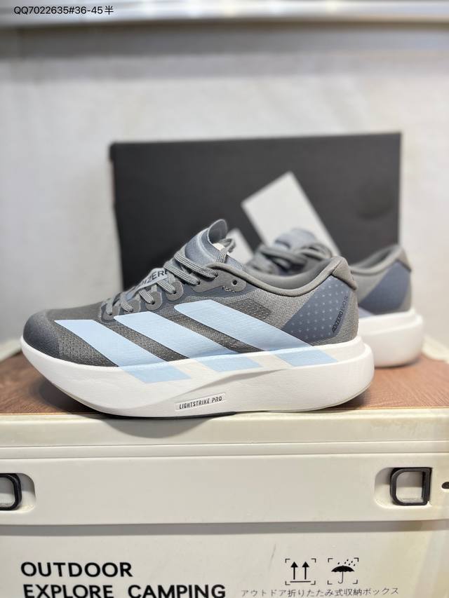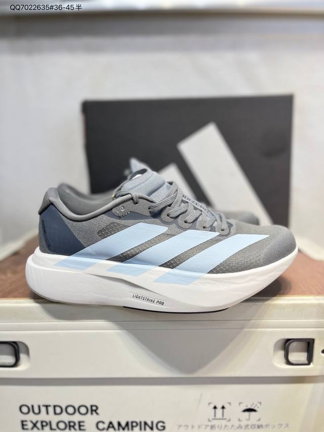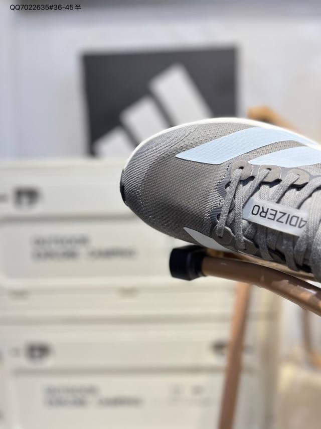 The Celermesh knitted mesh upper is very lightweight with large gaps between the fibers, ensuring breathability and sweat-wicking during running. The tongue is directly connected to the lining on both sides and the sole, preventing it from shifting laterally during running. An extra set of lace holes has been added to the standard eyelets to accommodate different foot shapes. Breakthrough Energyrods technology helps runners achieve better results. The unique Lightstrike Pro foam in the midsole provides a slightly elastic feel and excellent support during running. For top elites and advanced runners, the Adios Pro is a reliable racing shoe. Jh6205 Qq7022635# 36-45 half