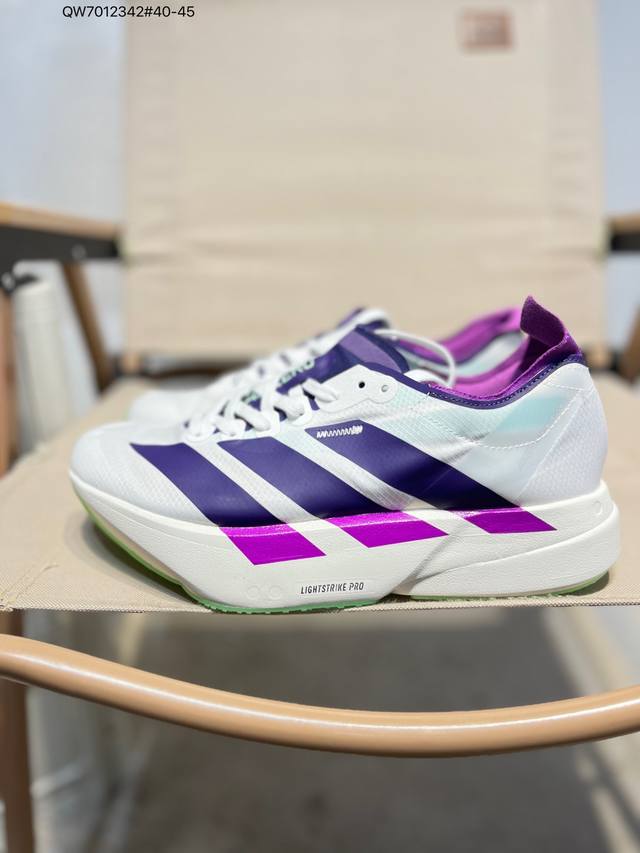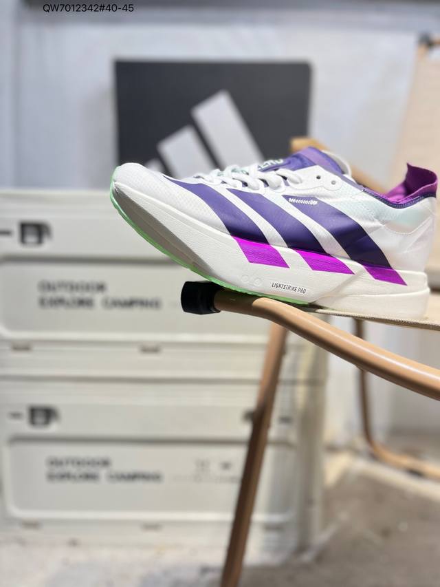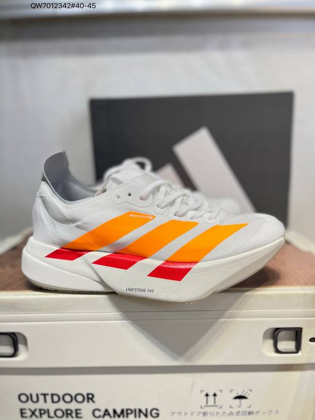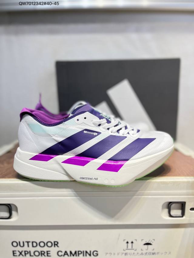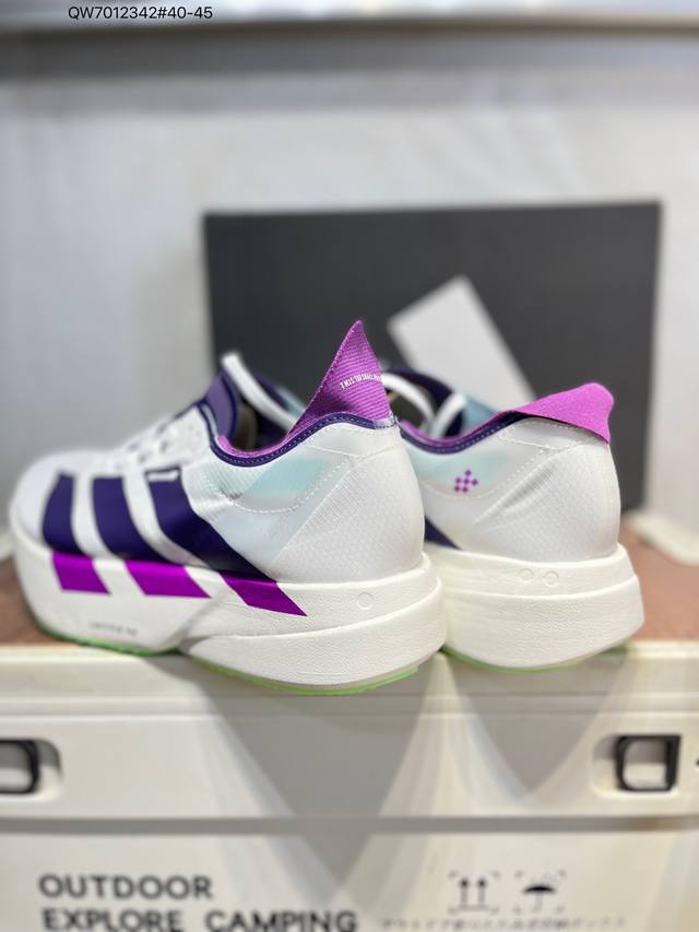 The Celermesh knitted mesh upper is very lightweight with large gaps between the fibers, ensuring breathability and sweat-wicking during running. The tongue is directly connected to the lining on both sides and the sole, preventing it from shifting laterally during running. An extra set of lace holes has been added to the standard eyelets to accommodate different foot shapes. Breakthrough Energyrods technology helps runners achieve better results. The unique Lightstrike Pro foam in the midsole provides a slightly elastic feel and excellent support during running. For top elites and advanced runners, the Adios Pro is a reliable racing shoe. Jr1658 Qw7012342#40-45