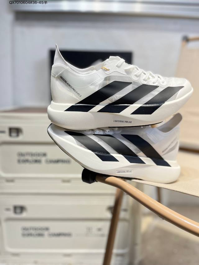 The overall appearance is very similar to the Adizero Adios Pro Evo 1, and the midsole configuration is equipped with a full-length Lightstrike Pro