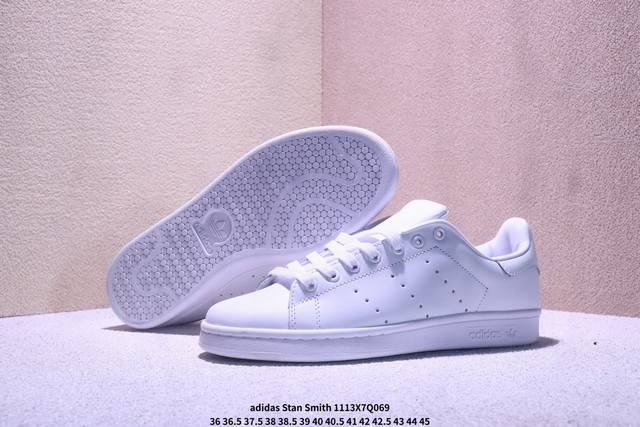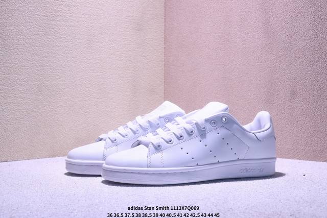 Adidas Classic Y Sneakers - New Version: Adidas Originals Stan Smith Platform White Sneakers with Height Increase! Upgraded Comfort! The shoe maintains the traditional low-top design, featuring a single color throughout for a minimalist look. The upper is wrapped in soft leather, ensuring both quality and enhanced comfort. Details include the trefoil logo on the heel and the new handwritten "Stansmith" lettering on the tongue, highlighting the shoe's identity. Finally, the natural gum rubber construction not only significantly improves the height increase but also enhances the overall feel. Type: Men's/Women's Shoes Product Code: Fx5501 Size: See image Xm1113Q069