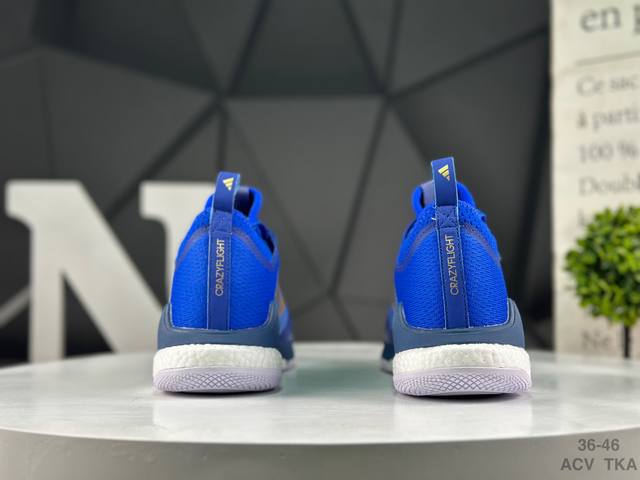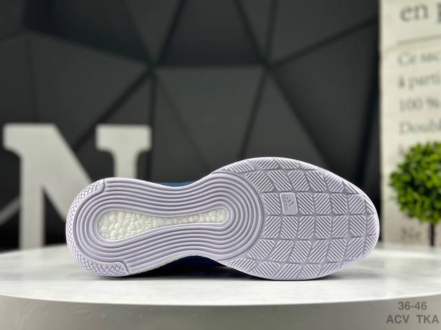 The mid-cut design increases ankle support and adopts a breathable mesh upper with a stretchy, sock-like fit. Boost cushioning technology is used in 3 and 4 places on the sole for high jumps and soft landings. The surrounding synthetic fiber frame enhances stability during lateral movements