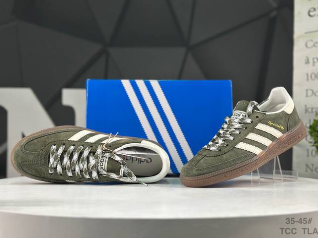 Adidas Handball Spezial, a classic retro casual sneaker. The entire shoe is made of suede, with a durable rubber outsole. This sneaker embodies youthful spirit. The classic three stripes on the side ensure clear brand recognition. Official product number: Ki5940. Sizes: As shown in the picture.