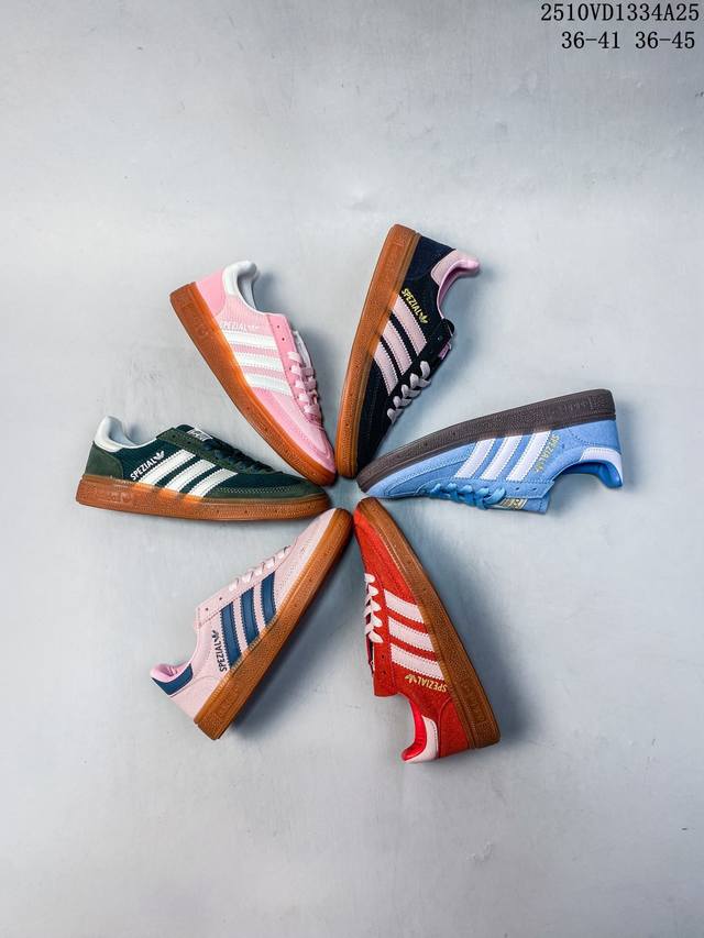 Adidas Handball Spezial Low-Top Adidas Originals Retro Casual Sneakers, German Training Shoes, Rubber Sole, Soft Fabric, Classic Sports Shoes. Round toe, stitched design, front lace-up, tongue tag, classic three stripes on the side, a sneaker embodying youthful spirit. Clear brand recognition, durable rubber outsole. Product Code: Ig1976 Size: As shown 10Vd1334A25