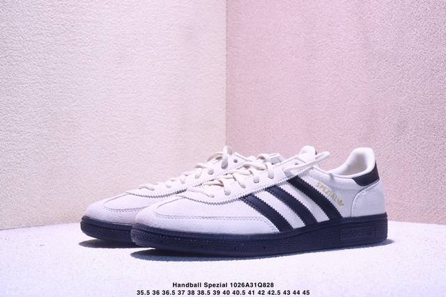 Adidas Handball Spezial Official Correct Version. Adidas classic retro casual sneakers. The entire shoe is made of suede, with a durable rubber outsole. These sneakers embody youthful spirit. The classic three stripes are clearly visible on the side of the shoe. Item No.: Jr3667. Sizes: 35-45.5. Xm1026Q828