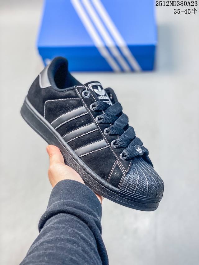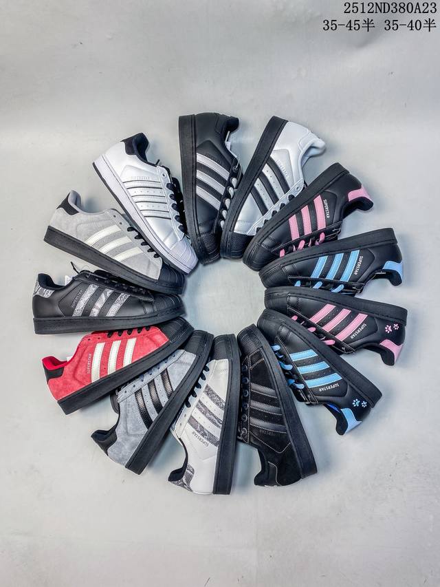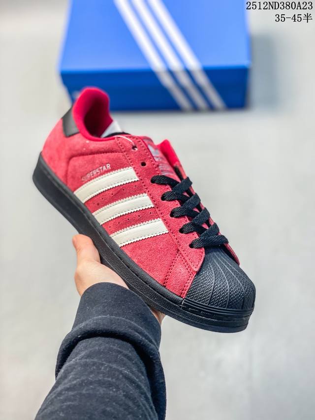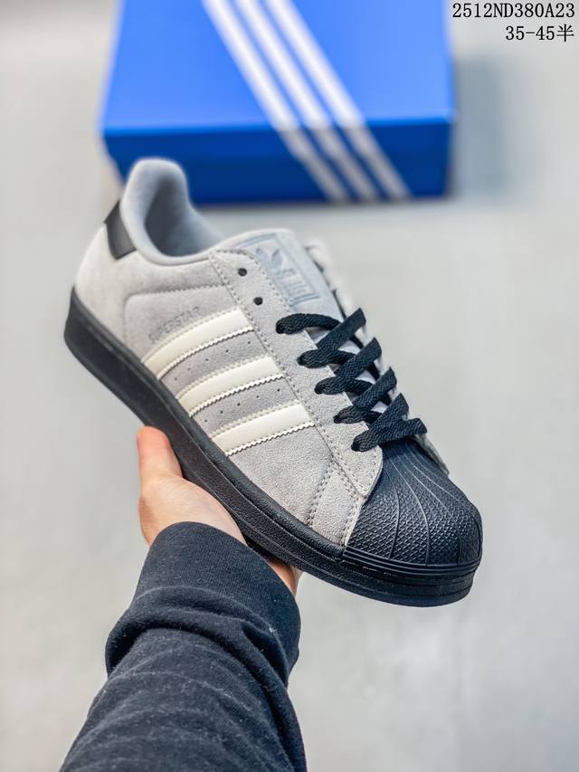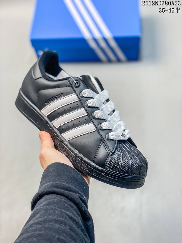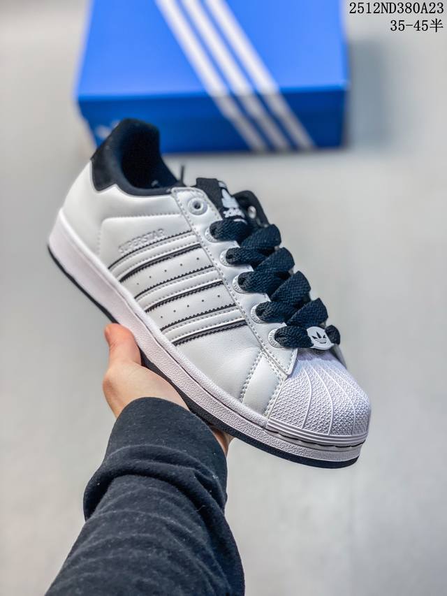 Adidas men's and women's shoes, authentic label, half-size system, original last development pattern, made of soft grained cowhide leather upper, 2025 improved full-coverage insole, correct 2025 version sole mold and scallop toe cap. Adidas Originals Superstar classic shell toe series low-top versatile casual sports sneakers. Type: Men's and women's shoes. Sizes: 35.5 36 36.5 37 38 38.5 39 40 40.5 41 42 42.5 43 44 45. 12Nd380A24.