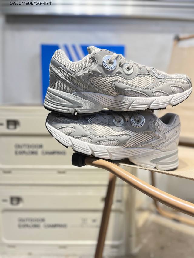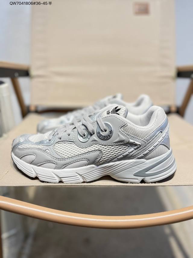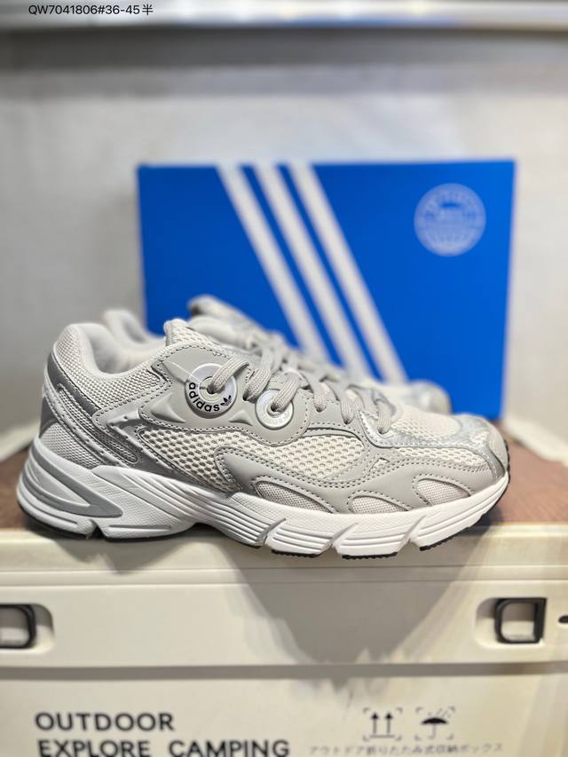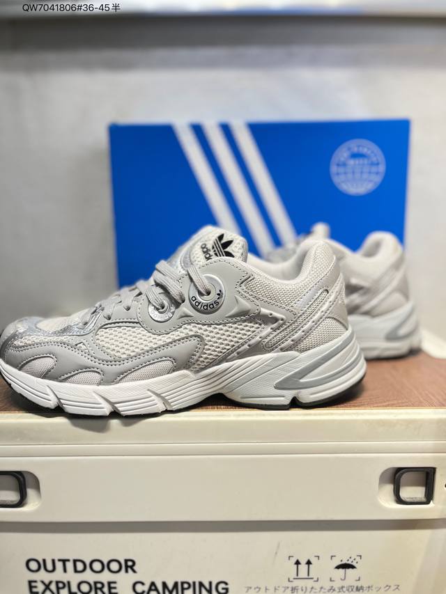 Adidas men's and women's shoes, authentic label, half-size system, original last development pattern, using cowhide leather and breathable mesh upper material, equipped with Torsion System anti-torsion technology, the correct 4-layer combination sole on the market pays tribute to the millennium, Adidas Originals Astir Space Silver Grey Astir series dad style retro breathable cushioning casual sports running shoes "Space Grey Silver"