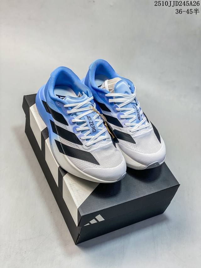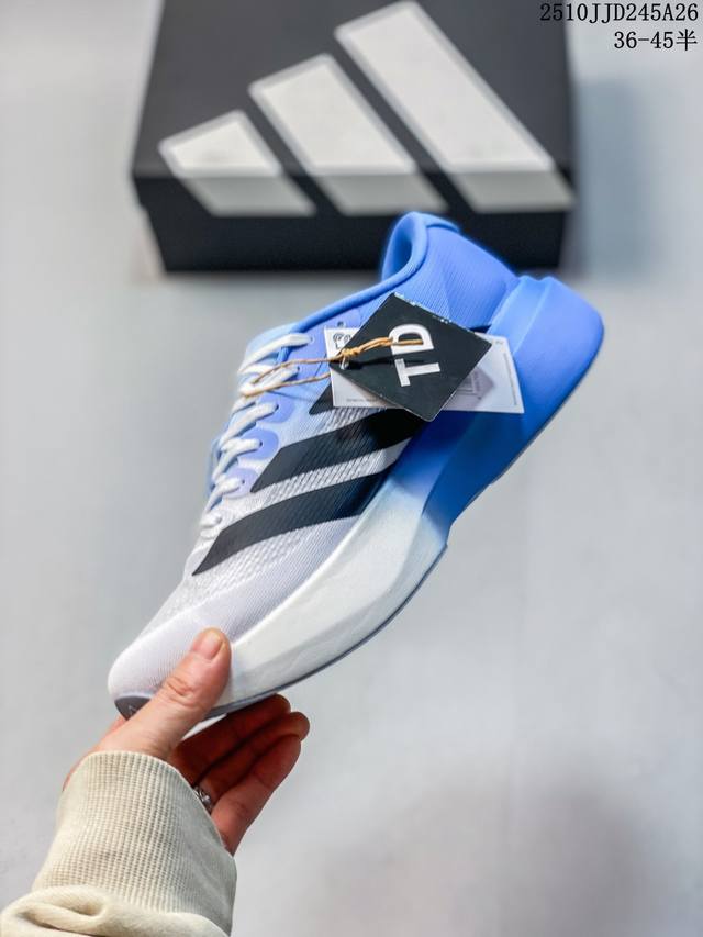 Adidas men's and women's shoes, authentic label, half-size system, upgraded original last and paper version development, using lightweight one-way elastic woven upper material, midsole with Lightstrike high-density foam + forefoot single-piece Lightstrike Pro cushioning technology, outer layer with Continental rubber anti-slip outsole. New minimalist design language. Adidas Adizero Adios Pro Evo 4 Volt Black, low-top lightweight breathable racing casual sports running shoes "Js4453