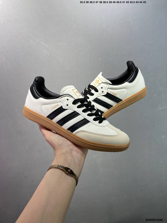 Adidas men's and women's shoes, half-size system, featuring a nubuck leather upper and an external rubber outsole for a timeless classic look. Adidas Originals Samba Og Samba series gentlemanly training football style versatile low-top casual sports shoes, "Sesame Yellow Black Gum Sole Ie5836