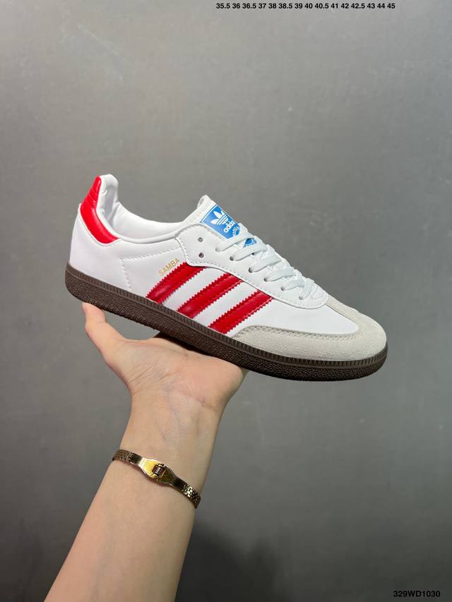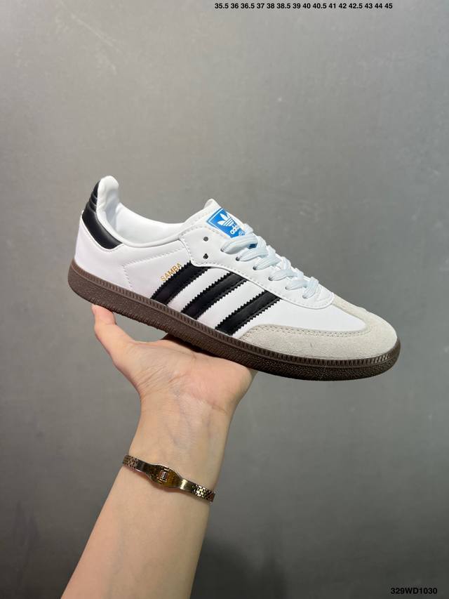 Adidas men's and women's shoes, half-size system, featuring a nubuck leather upper and an external rubber outsole for a timeless classic look. Adidas Originals Samba Og Samba series gentlemanly training football style versatile low-top casual sports shoes in "Sesame Yellow Black Gum Sole Ie5836