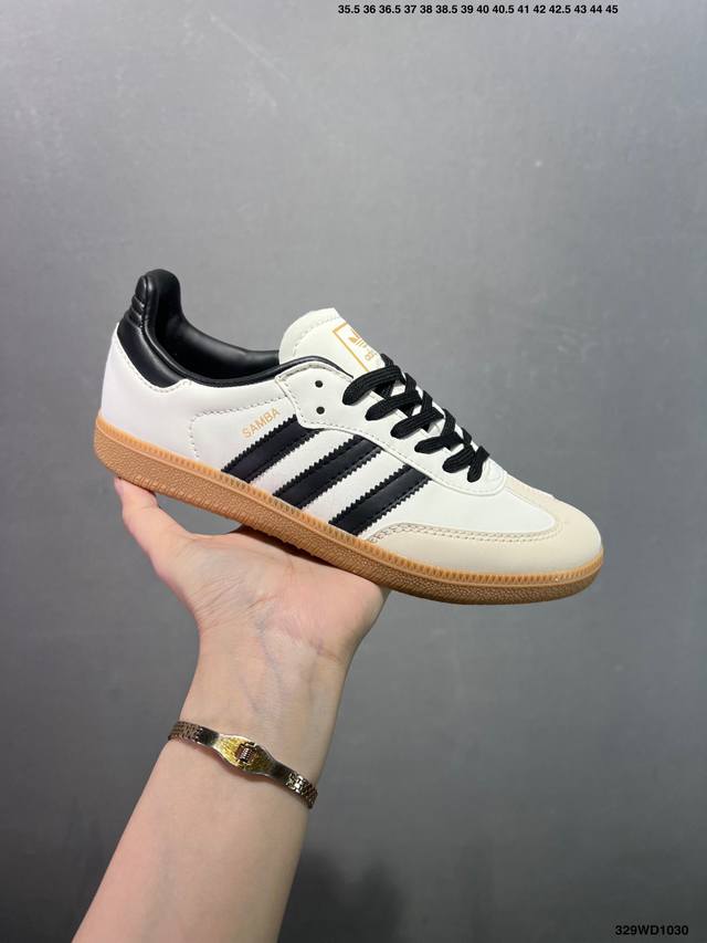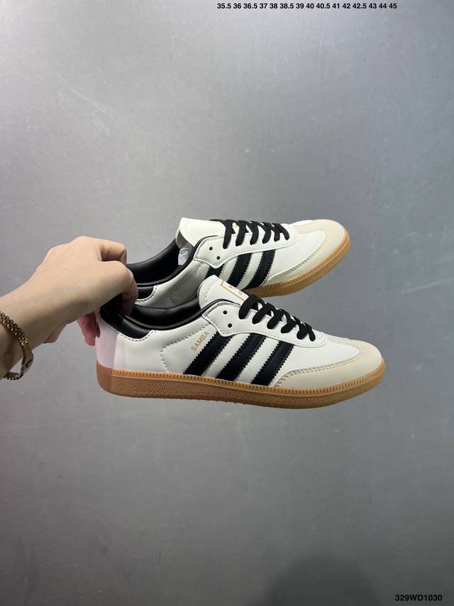 Adidas men's and women's shoes, half-size system, featuring a nubuck leather upper and an external rubber outsole for a timeless classic look. Adidas Originals Samba Og Samba series gentlemanly training football style versatile low-top casual sports shoes in "Sesame Yellow Black Gum Sole Ie5836