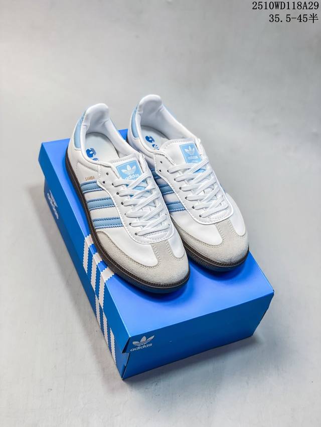 Adidas men's and women's shoes, half-size system, featuring a nubuck leather upper and an external rubber outsole for a timeless classic look. Adidas Originals Samba Og Samba series gentlemanly training football style versatile low-top casual sports shoes in "Sesame Yellow Black Gum Sole Ie5836
