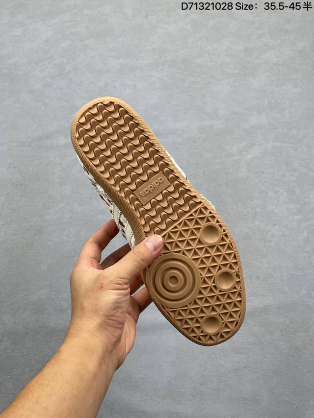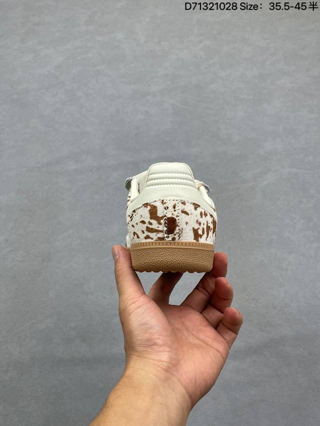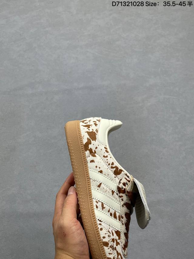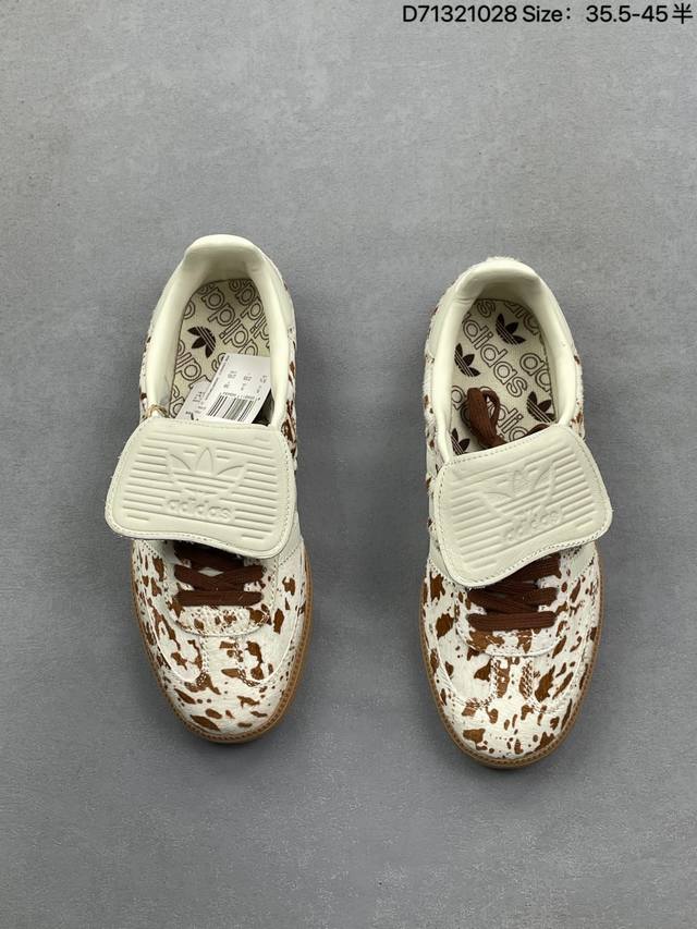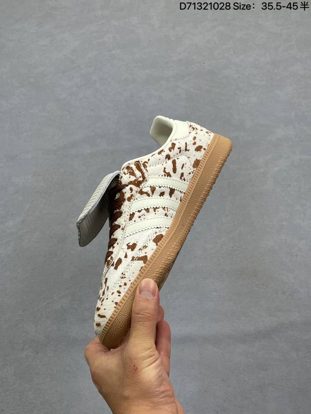 Adidas , men's and women's shoes in half sizes, featuring a faux brown horsehair and suede upper with PVC trim, an eco-friendly and renewable marine glass insole, and an Rb wear-resistant and non-slip rubber outsole, bringing back the most original and timeless classic style. Adidas Originals Samba Lt Samba series gentlemanly training football style versatile low-top casual sports shoes "Long Tongue White Brown Cowboy" JS3931