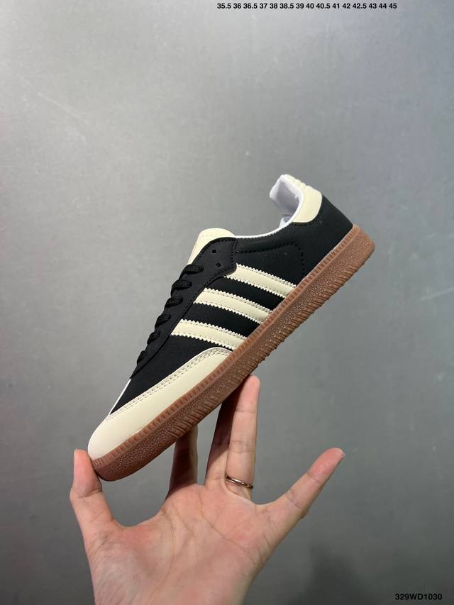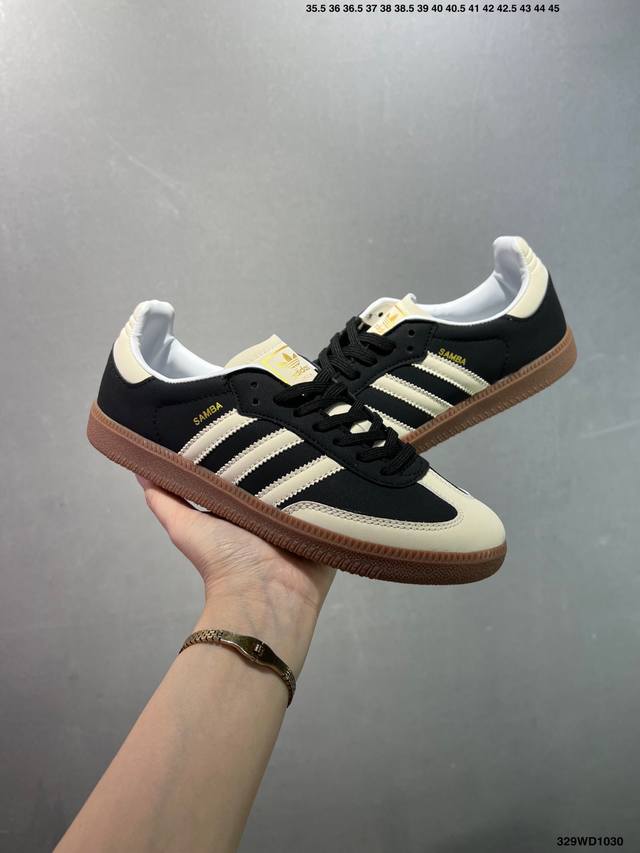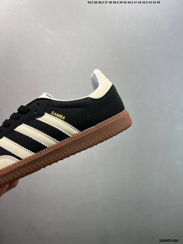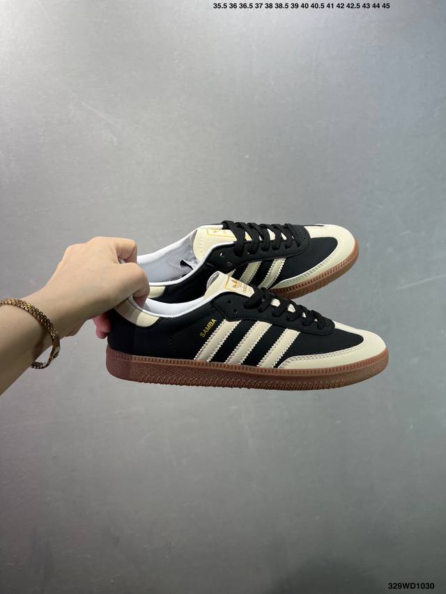 Adidas men's and women's shoes in half sizes, featuring a nubuck leather upper and an external rubber outsole for a timeless classic look. Adidas Originals Samba Og Samba series gentlemanly training football style versatile low-top casual sports shoes in "Sesame Yellow Black Gum Sole Ie5836
