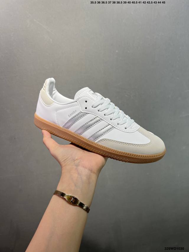 Adidas men's and women's shoes in half sizes, featuring a nubuck leather upper and an external rubber outsole for a timeless classic look. Adidas Originals Samba Og Samba series gentlemanly training football style versatile low-top casual sports shoes in "Sesame Yellow Black Gum Sole Ie5836