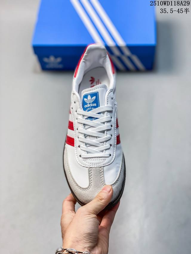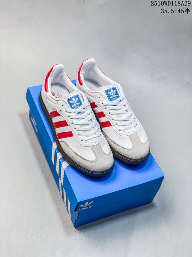 Adidas men's and women's shoes in half sizes, featuring a nubuck leather upper and an external rubber outsole for a timeless classic look. Adidas Originals Samba Og Samba series gentlemanly training football style versatile low-top casual sports shoes in "Sesame Yellow Black Gum Sole Ie5836