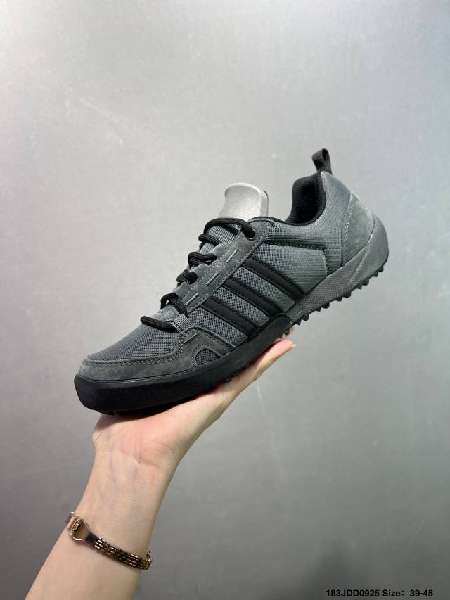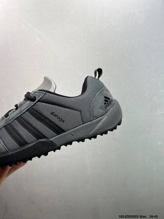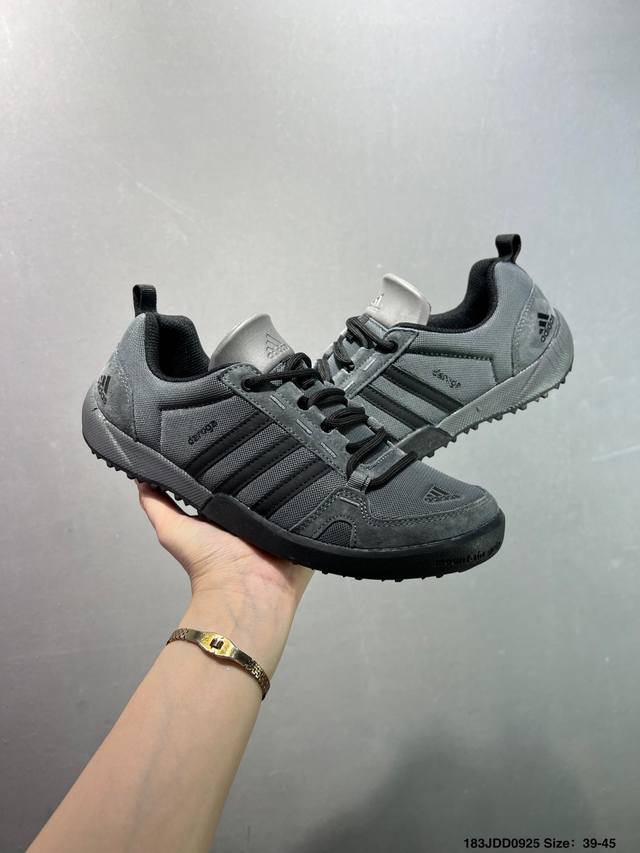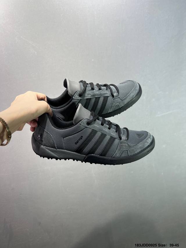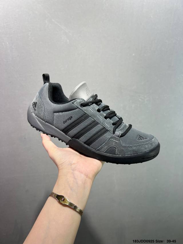 Adidas' new Daroga Plus Canvas Shoes for men and women. These foldable outdoor shoes are designed for hiking and traveling. They feature a canvas upper with Adiprene technology. Sizes: 39, 40, 41, 42, 43, 44. Item No.: Qd66605. Code: 183Jdd0925.