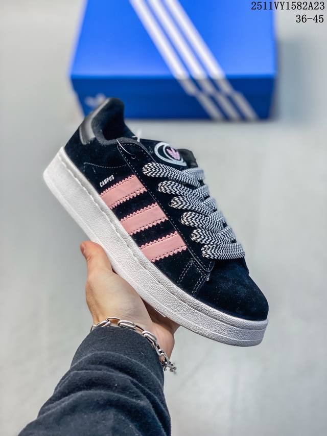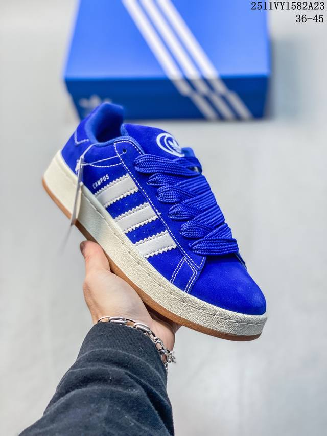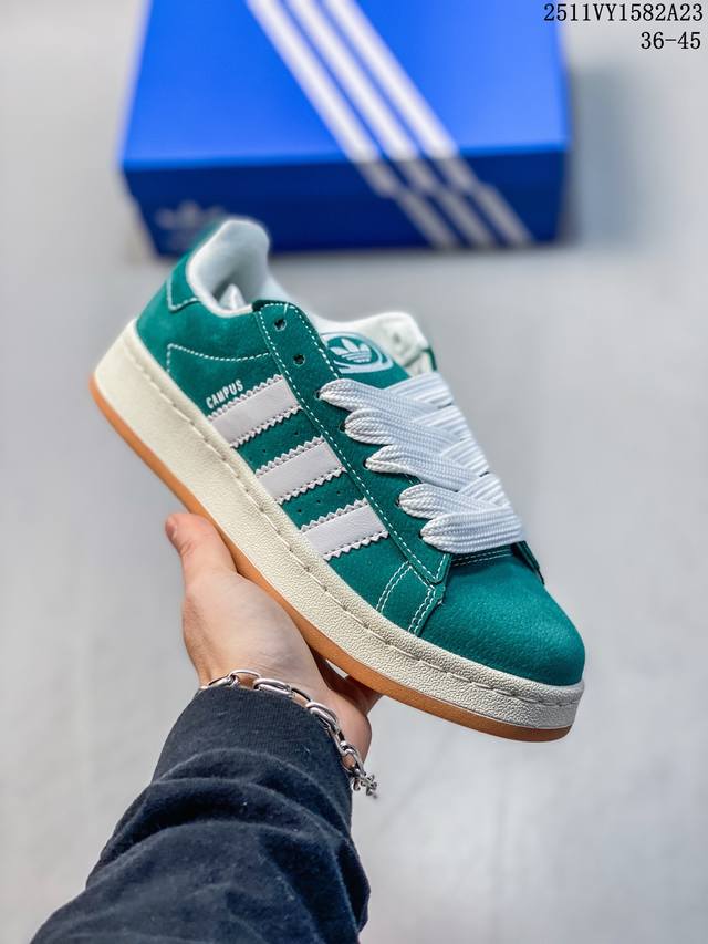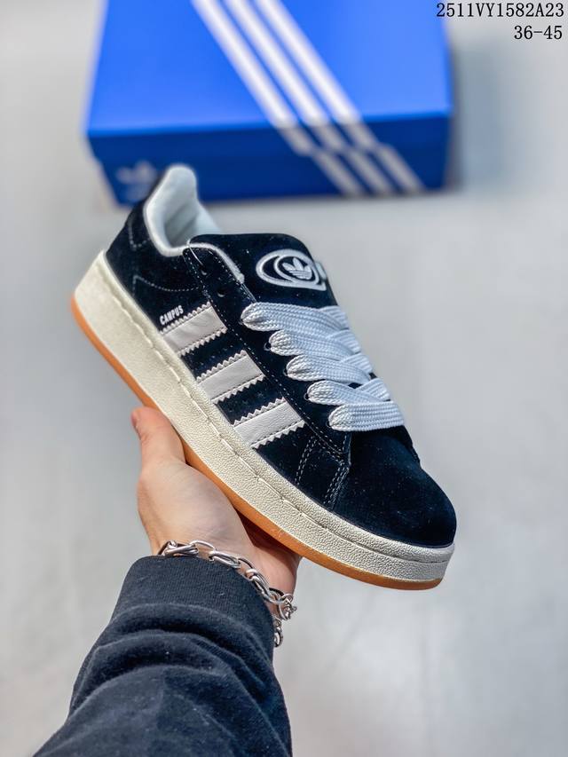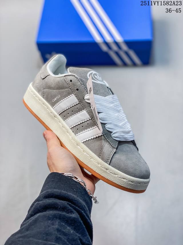 Adidas Originals Campus 00S Versatile Item DDD College Series Bread Style Classic Retro Low-Top Versatile Casual Sports Sneakers. This time, Originals chose the classic retro Campus silhouette as the blueprint to create a brand new bread shoe. This shoe model has been collaborated on many times, and Edison Chen was particularly fond of it back in the day. In terms of brand recognition, it is no less popular than the Shell Toe, Forum, and other hot shoe models. This time, the Campus has changed its slim shape from the 80s. The tongue, upper, sole, and even details have been enlarged, creating the wide silhouette of the bread shoes that were popular around the turn of the millennium. Therefore, the shoe name has been changed to Campus 00S. The shoe body is made of suede leather with white regular leather. The texture still continues the classic Campus design. The tongue is padded more, making the overall shoe look more rounded. Paired with this light blue colorway, the blue fat cat design is really cute. The tongue also adds a new trefoil logo that is different from the previous Campus. To give the design a more millennial feel, the shoelaces are also wider. If you don't like that, traditional shoelaces are included for replacement. The sole features a beige distressed design, highlighting the shoe's retro vibe. Besides the fresh and lovely light blue colorway, there's also a cool gray colorway with a more rugged and retro look, and it's more dirt-resistant than the light blue version. (DDD 11Vy1582A23 DDD)