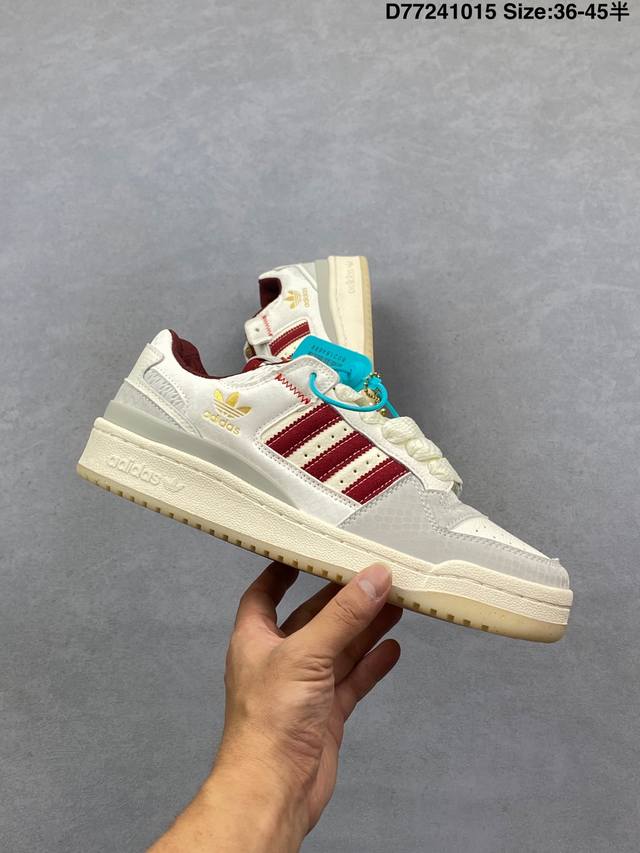 Adidas Originals Forum Low Men's and Women's Sports Sneakers, 2025 New Year of the Snake Limited Edition, a modern interpretation of classic basketball style. The English word "Forum" is a place for expression, a place to unleash one's passion and articulate one's views. The Adidas Forum was born in 1984 based on this concept. It made its mark on the court with its bold design, dedicated to helping players break through their limits and achieve greater success. This Adidas Forum low-top suede classic shoe aims to attract attention both on and off the court. Go all out! Partially made with recycled materials to reduce plastic waste pollution. Partially made with recycled materials in the upper. Lace-up design with Velcro strap, leather upper, fabric lining, rubber outsole. Type: Men's and Women's Shoes Product Code: Jp12970 Sizes: 36-45 (including half sizes) Code: D77241015