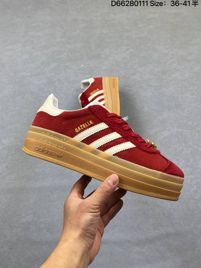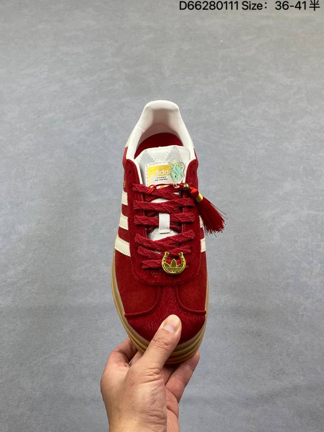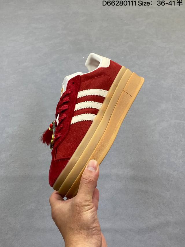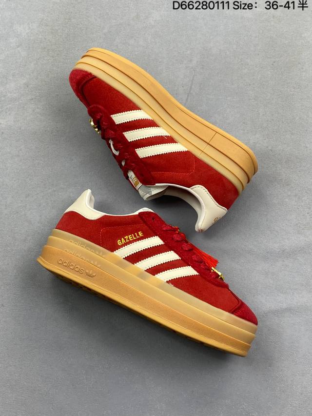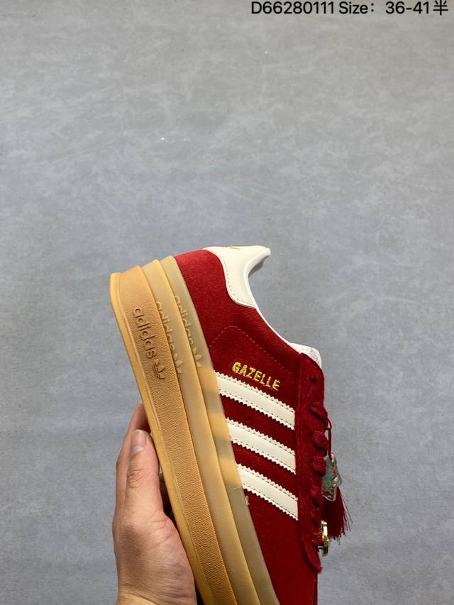 Adidas Originals Gazelle Cny New Year Limited Edition Horse Year Classic Sports Training Shoes Women's Red Antelope Platform Series Retro Versatile Thick Sole Height Increase Low-top Casual Sports Sneakers Kj4293 DDD The most comfortable and versatile leg-lengthening artifact. Not only is the price great, but the shoes are also great! The Originals Gazelle Bold shoe has been created with an ultra-thick sole version! Continuing the streamlined shoe shape, classic suede material, white three stripes and gold-stamped logo on the side, the cream white sole triples the height. Wearing these guarantees a continuous rise in height. DDD Product Code: Kj4293 DDD Sizes: 35.5 36 36.5 37 38 38.5 39 40 DDD Code: D66280111 DDD