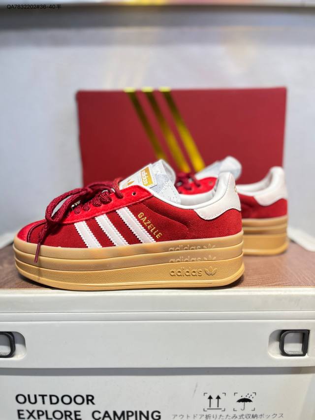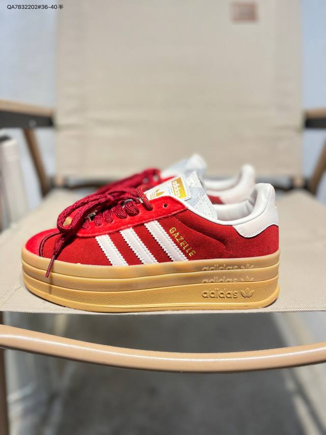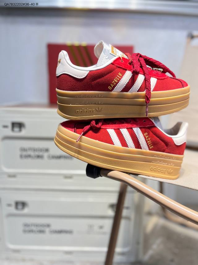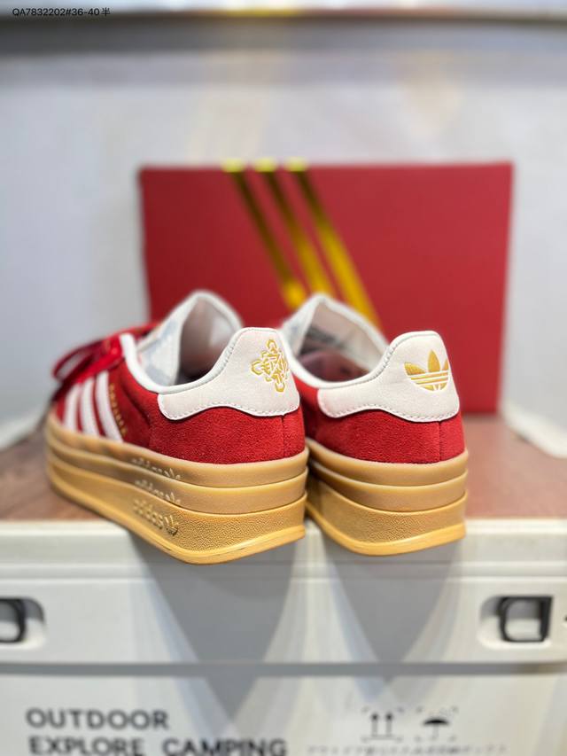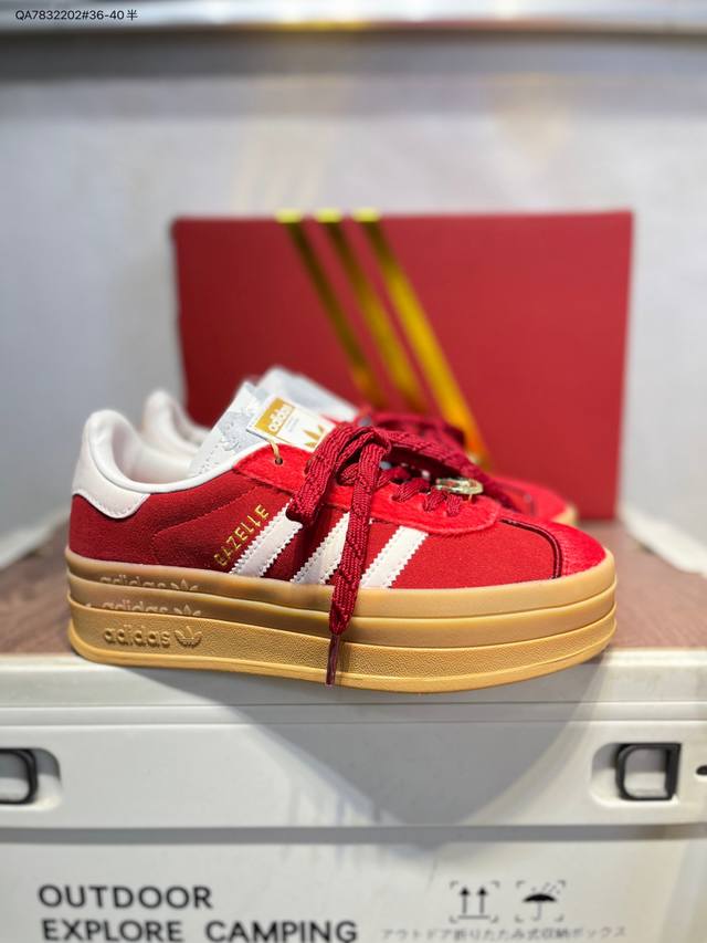 Adidas Originals Gazelle Cny New Year Limited Edition Horse Year Classic Sports Training Shoes Women's Red Antelope Platform Series Retro Versatile Thick Sole Height Increase Low-top Casual Sports Sneakers Kj4293 DDD The most comfortable and versatile leg-lengthening artifact. Not only is the price great, but the shoes are also great! The Originals Gazelle Bold shoe has been created with an ultra-thick sole version! Continuing the streamlined shoe shape, classic suede material, white three stripes and gold-stamped logo on the side, the cream white sole instantly triples the height. Wearing these guarantees a continuous rise in height. DDD Product Code: Kj4293 Qa7832202#36-40 half DDD